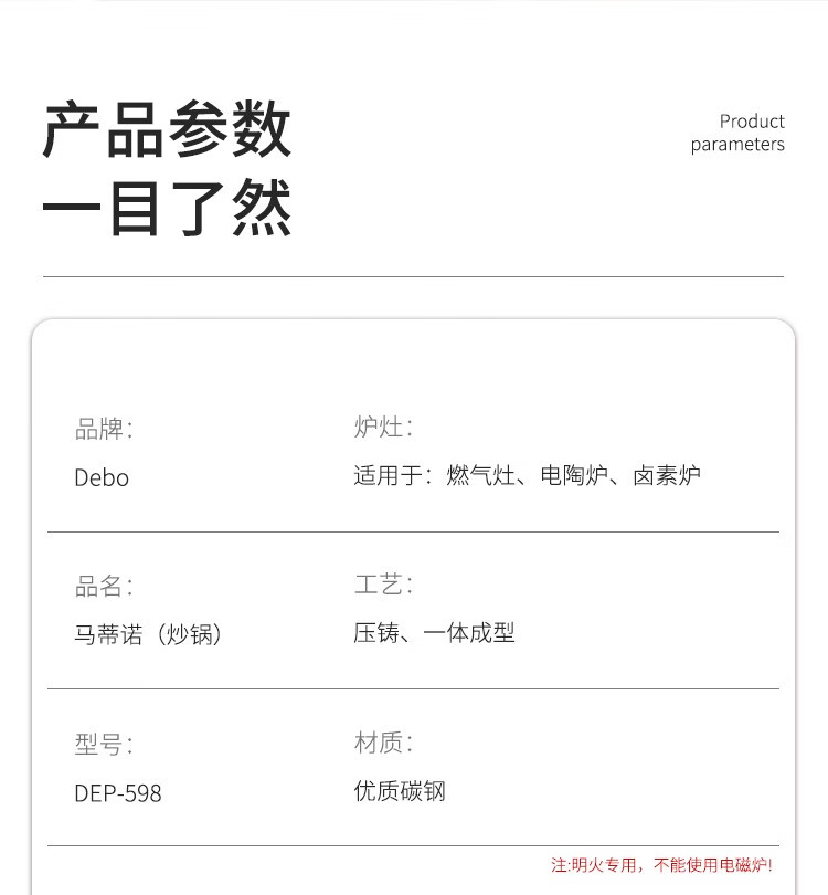 Debo 德铂马蒂诺炒锅不粘锅炒菜锅30cm