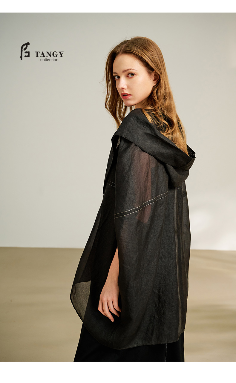 TANGYcollection天意2025秋季新品商场同款茛绸连帽女外套L251045