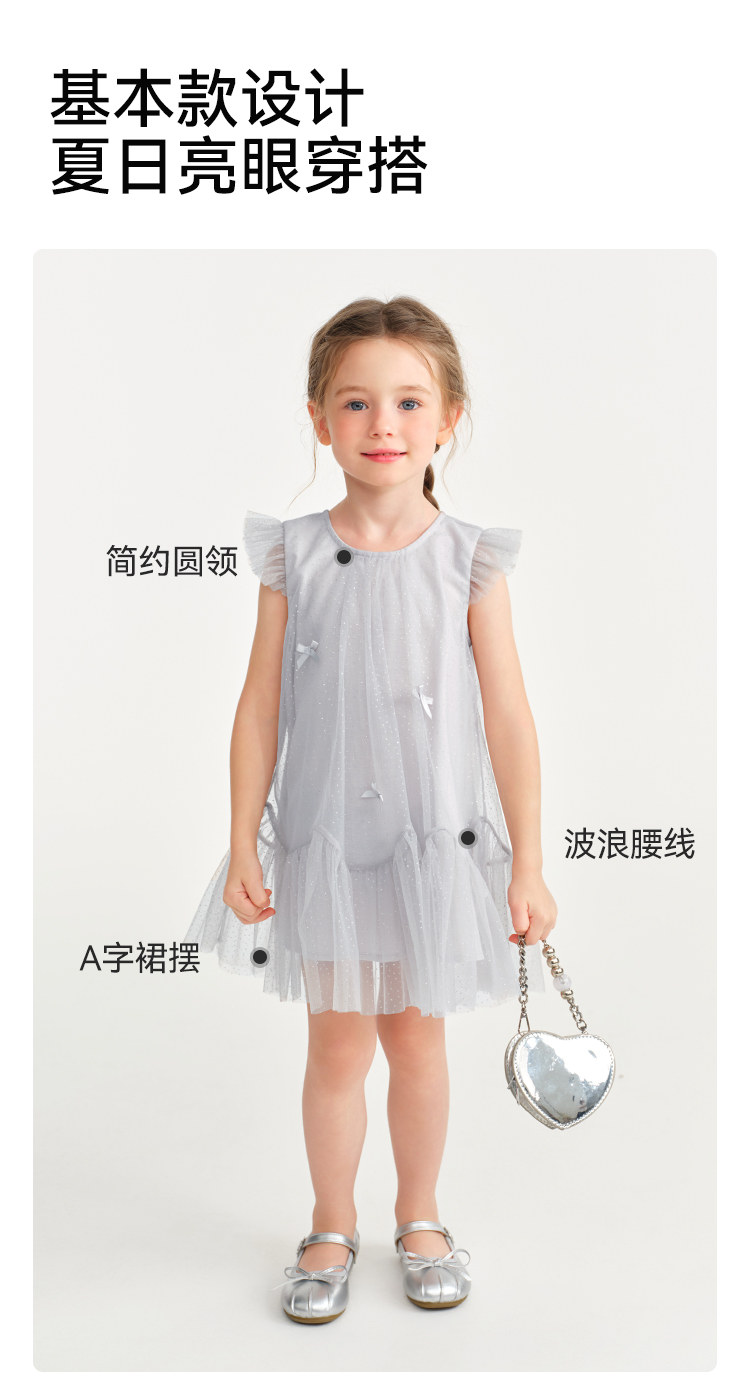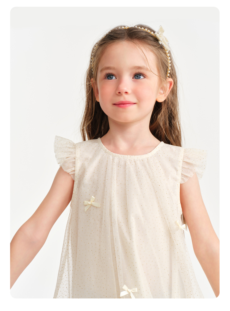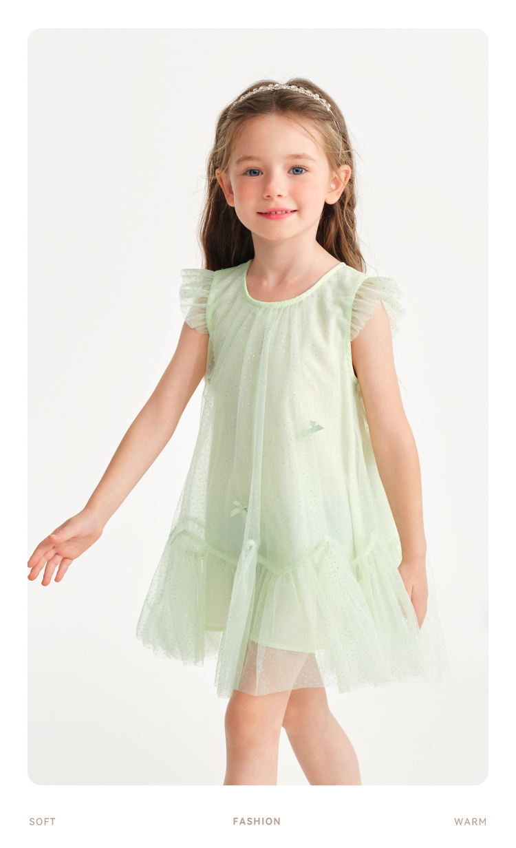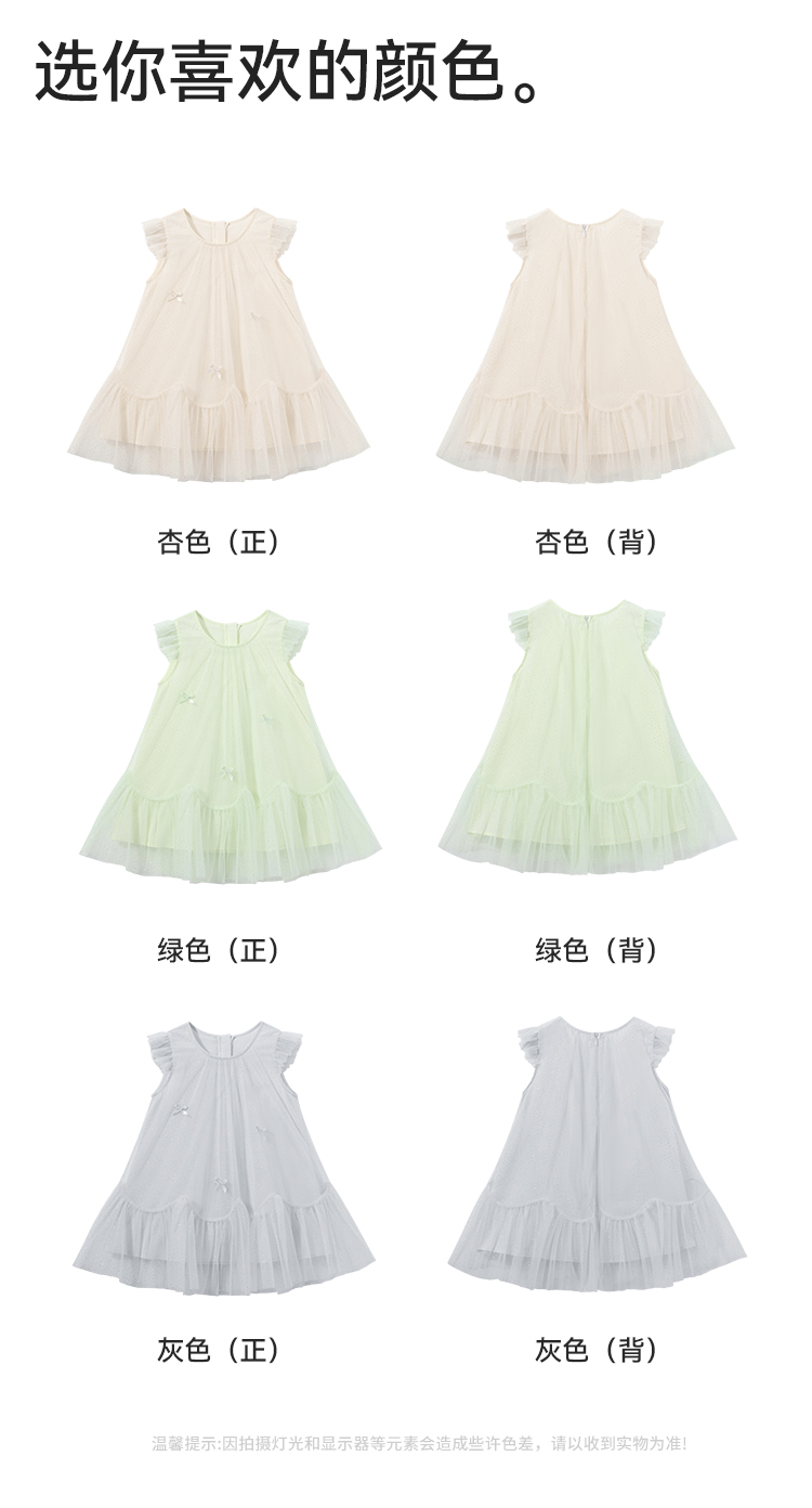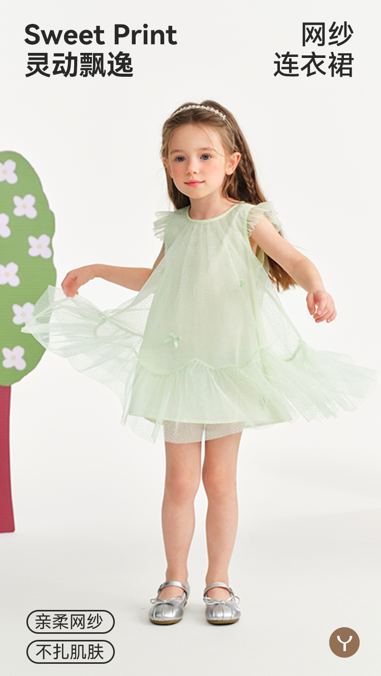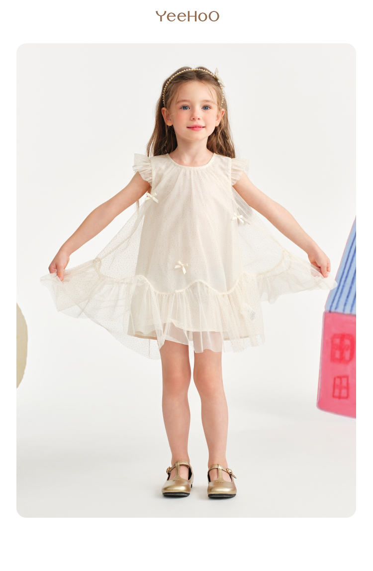 【英氏】【90-130】女童夏季小飞袖网纱连衣裙