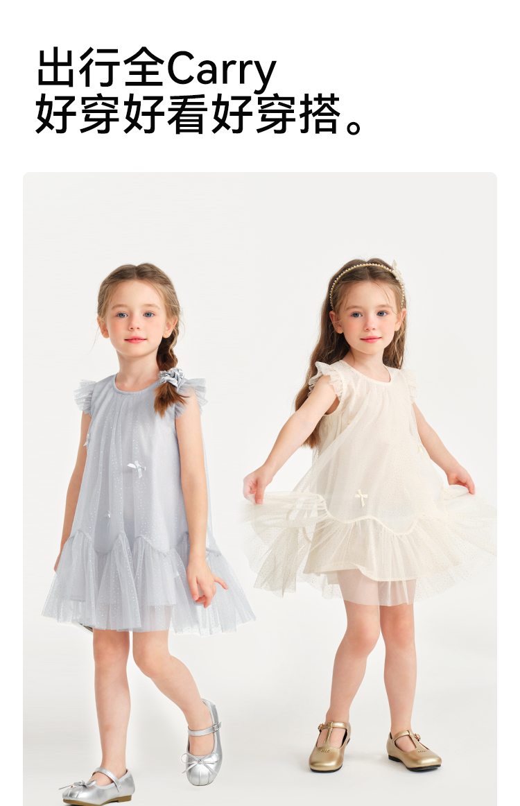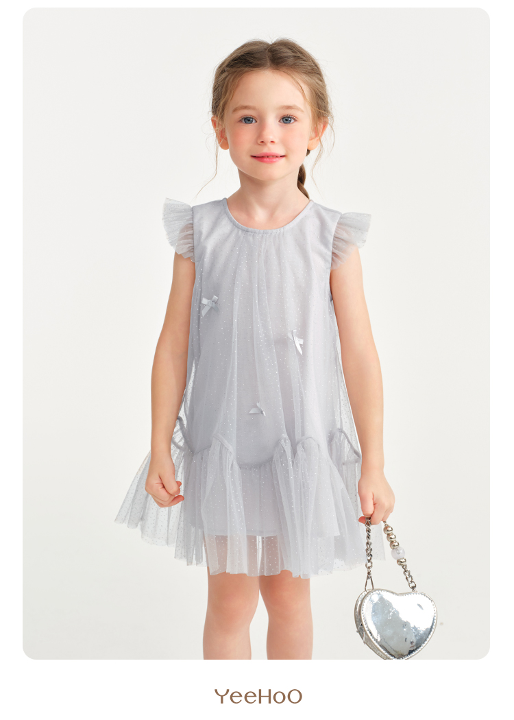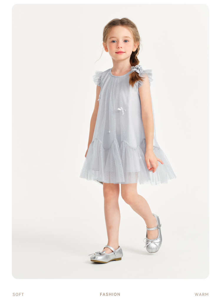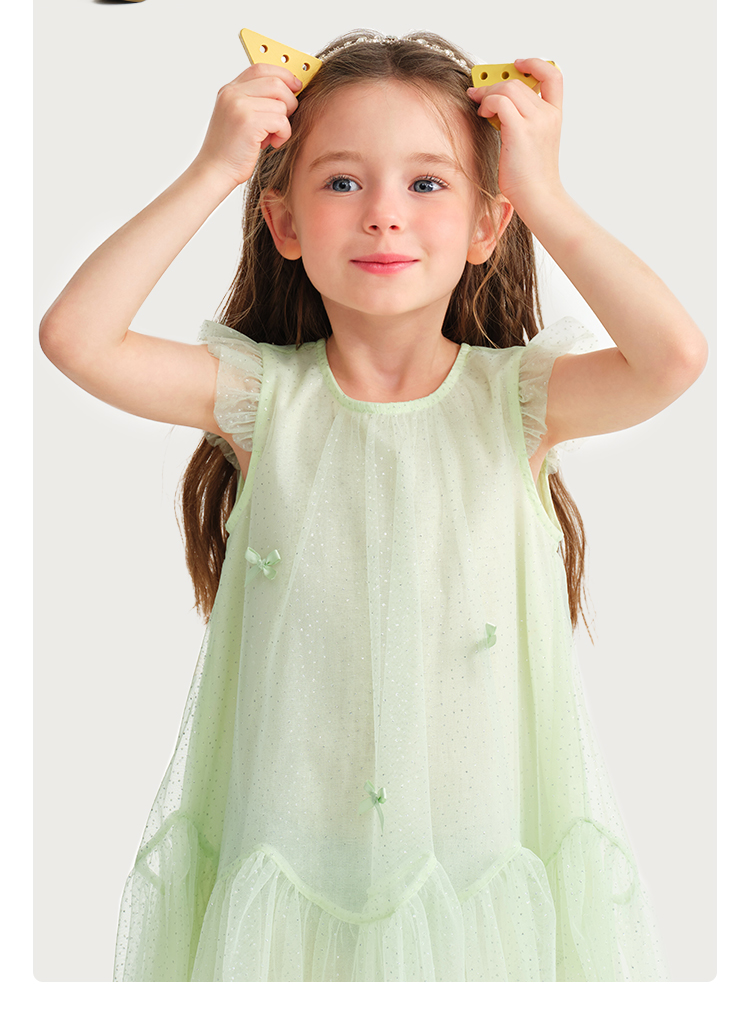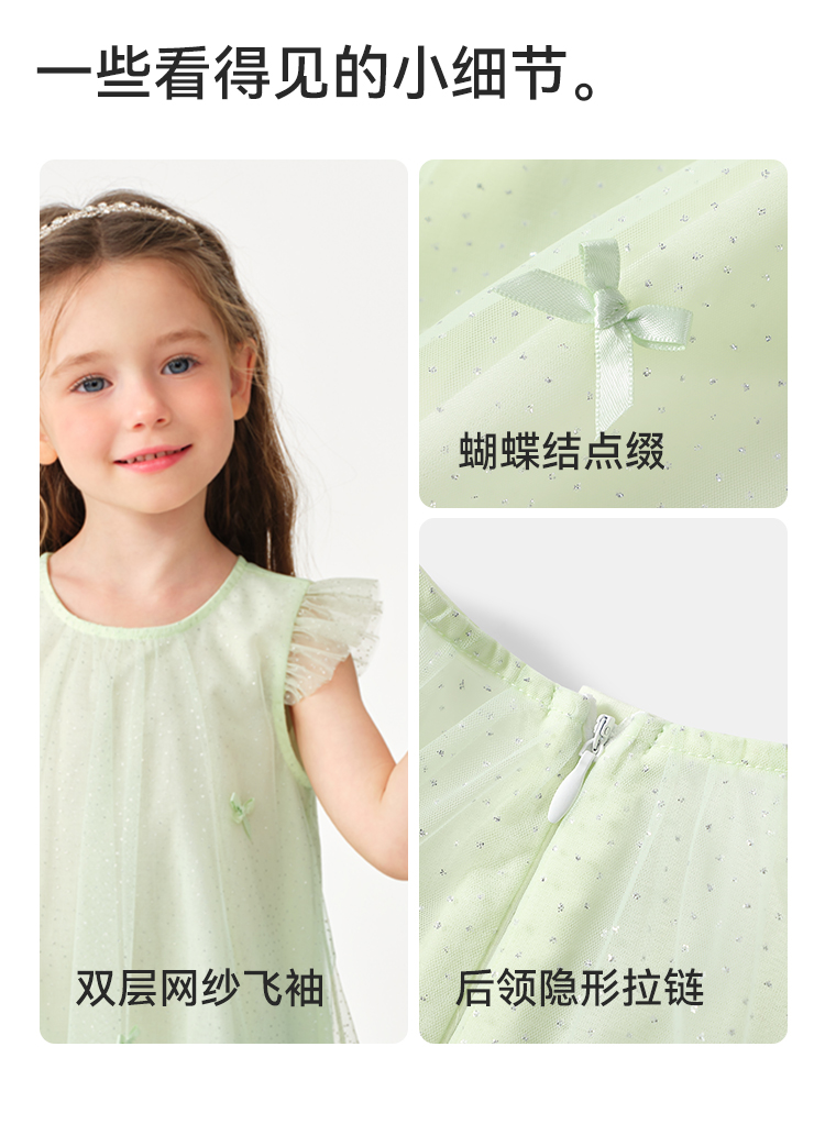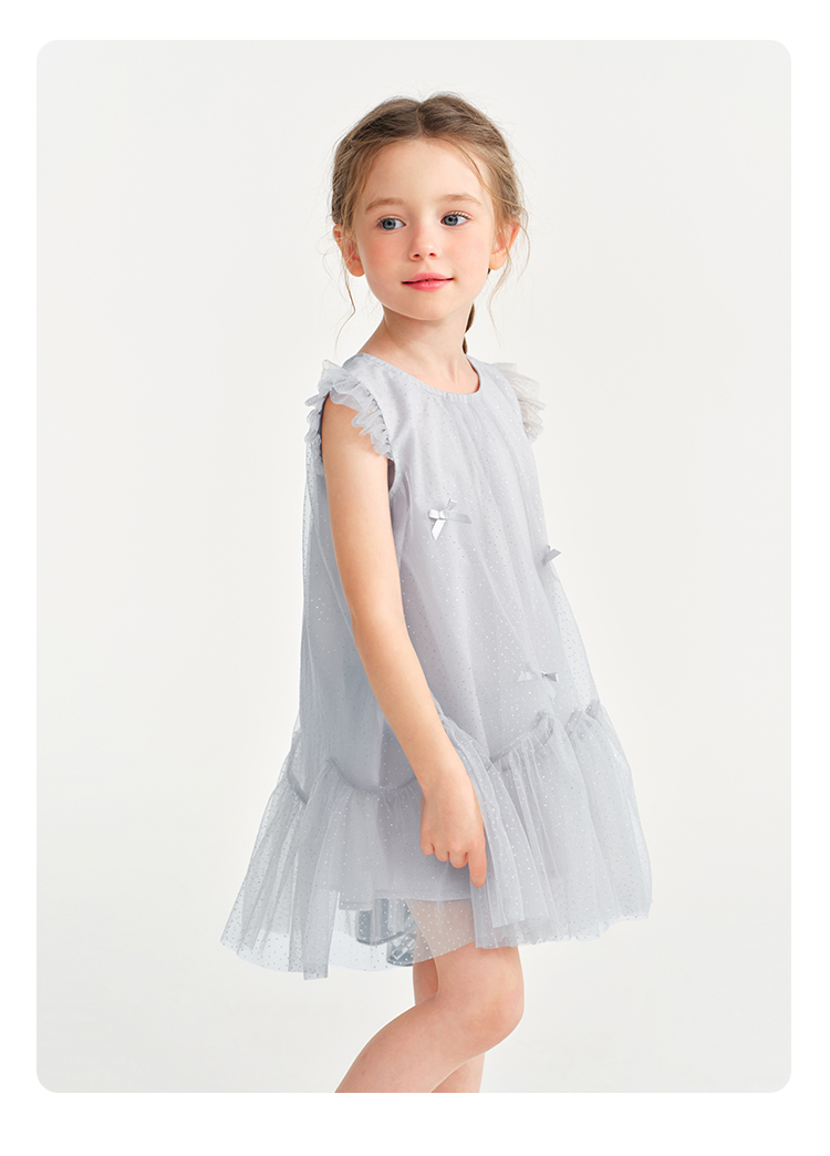 【英氏】【90-130】女童夏季小飞袖网纱连衣裙