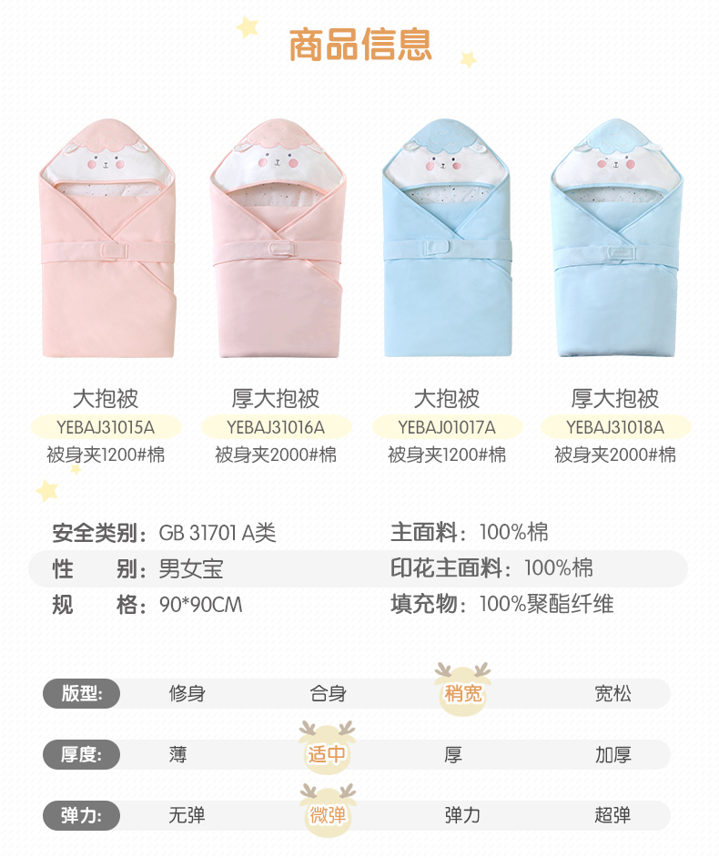 英氏婴儿抱被婴童抱毯初生宝宝床上用品包被YEBAJ01015A YEBAJ01017A