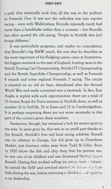 畅销书《马克斯·维斯塔潘》的作者詹姆斯·格雷,为纪念英国大奖赛,带来了刘易斯·汉密尔顿指定继任者乔治·拉塞尔的传记。从称霸东英吉利卡丁车赛道,到荣登三级方程式和二级方程式领奖台,乔治·拉塞尔如今已完全确立了自己作为一级方程式赛车新星的地位。在威廉姆斯车队磨练车技后,他于2022年与梅赛德斯签下了一份丰厚的合同,这充分彰显了他非凡的天赋。
