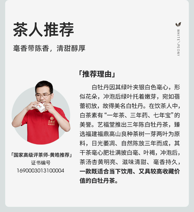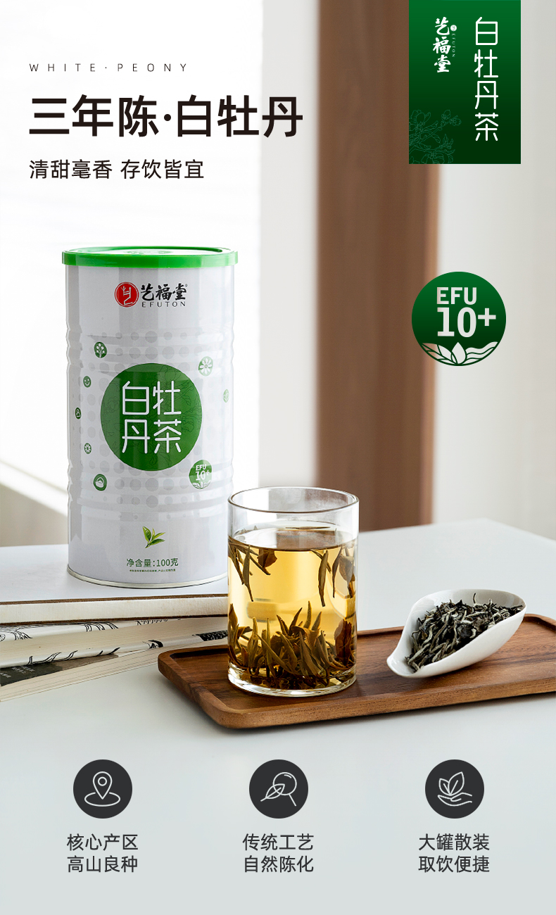【第2件半价】艺福堂 茶叶 福鼎原产 白牡丹特级 老白茶 三年陈 100g/罐