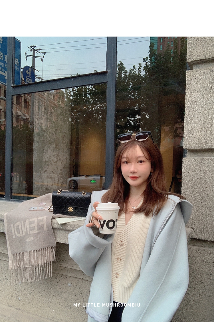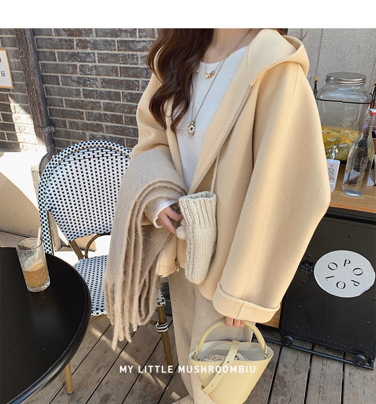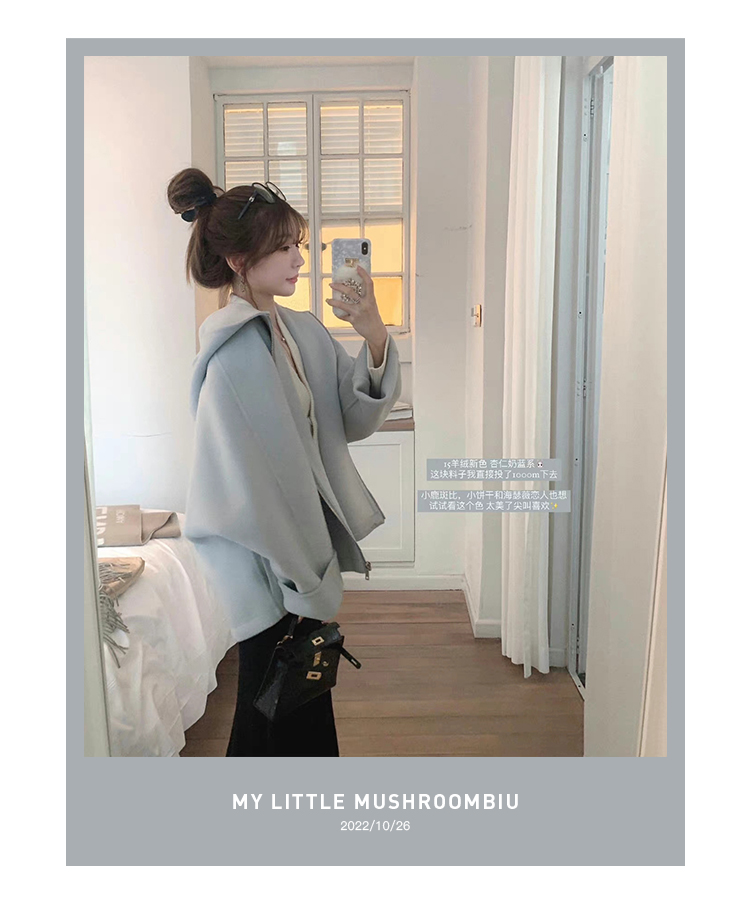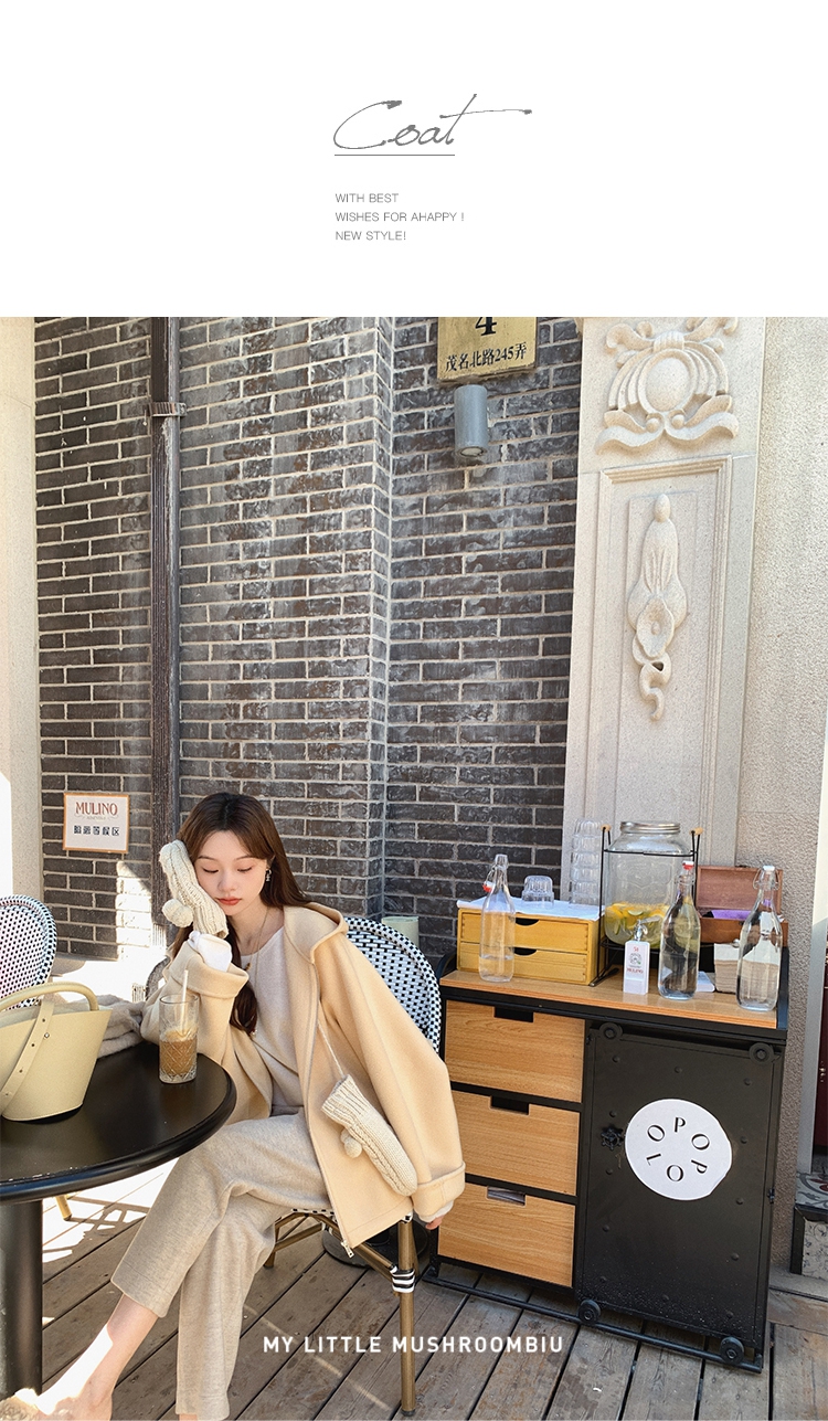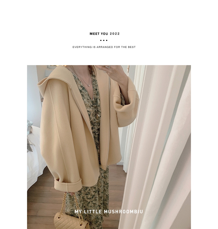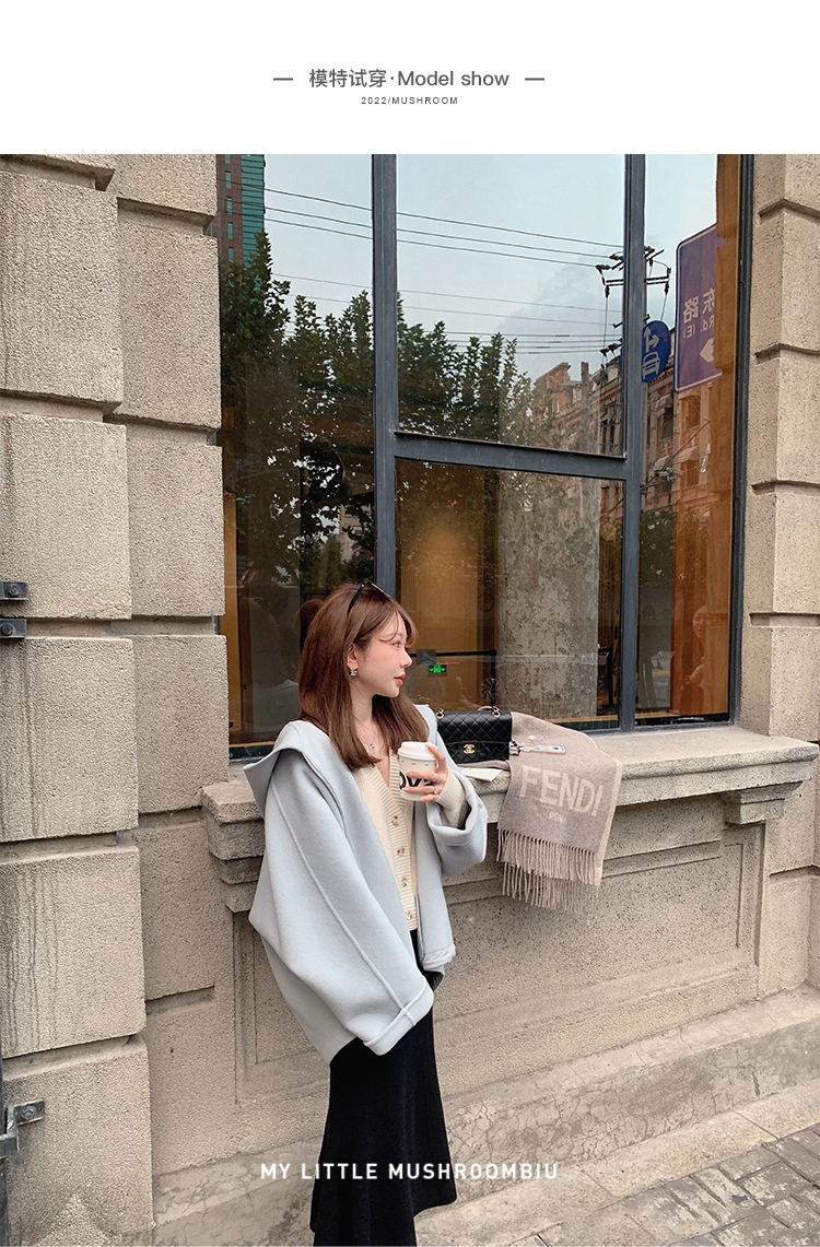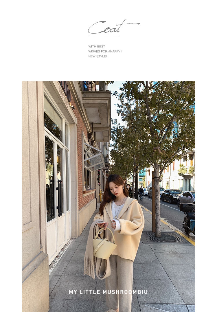 金蘑菇菇 自制线 玛奇朵 / 定染羊绒新季弧度大衣 连帽双面呢外套