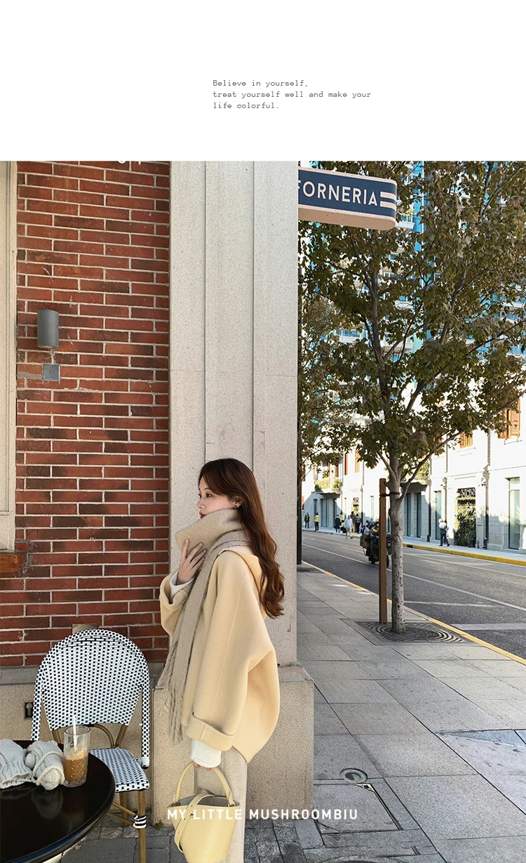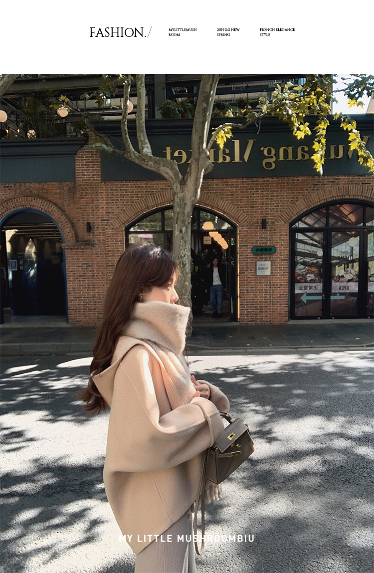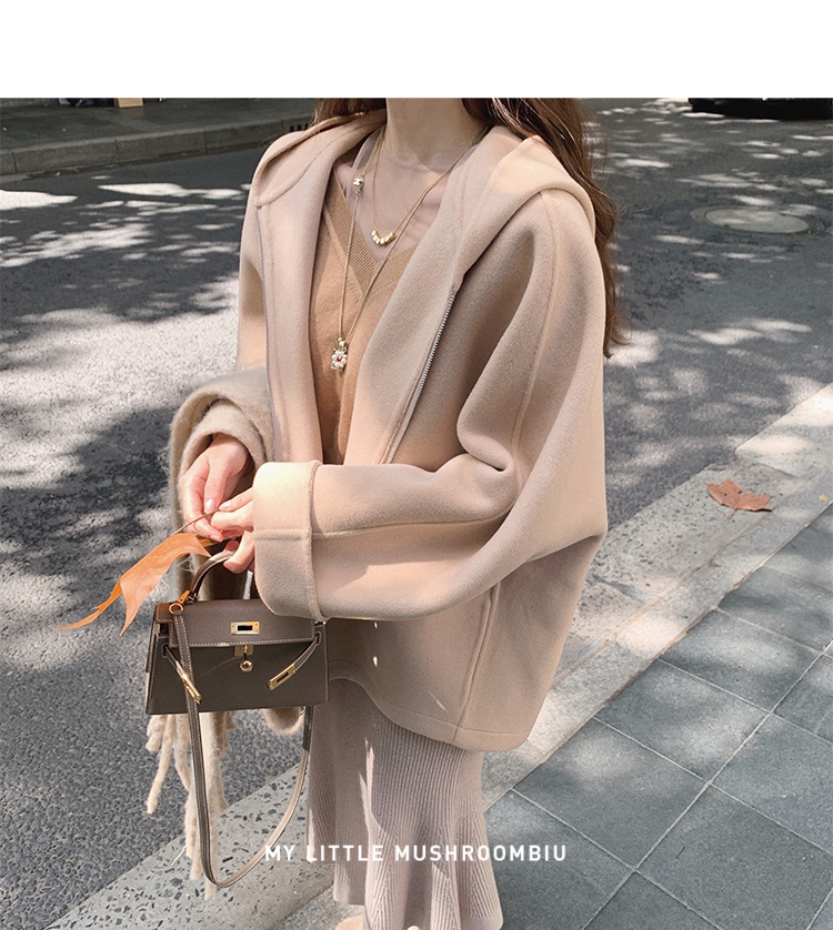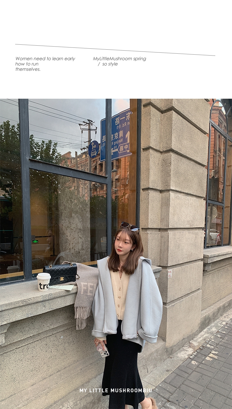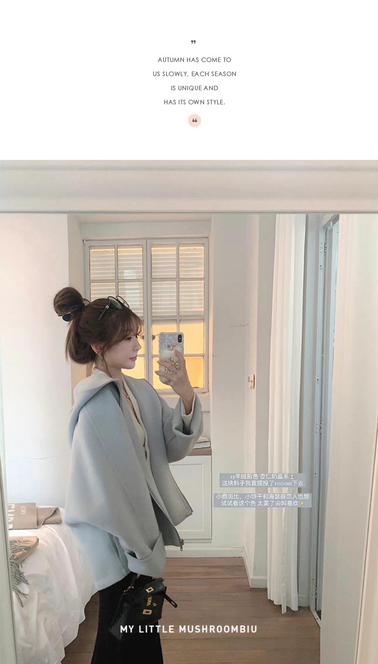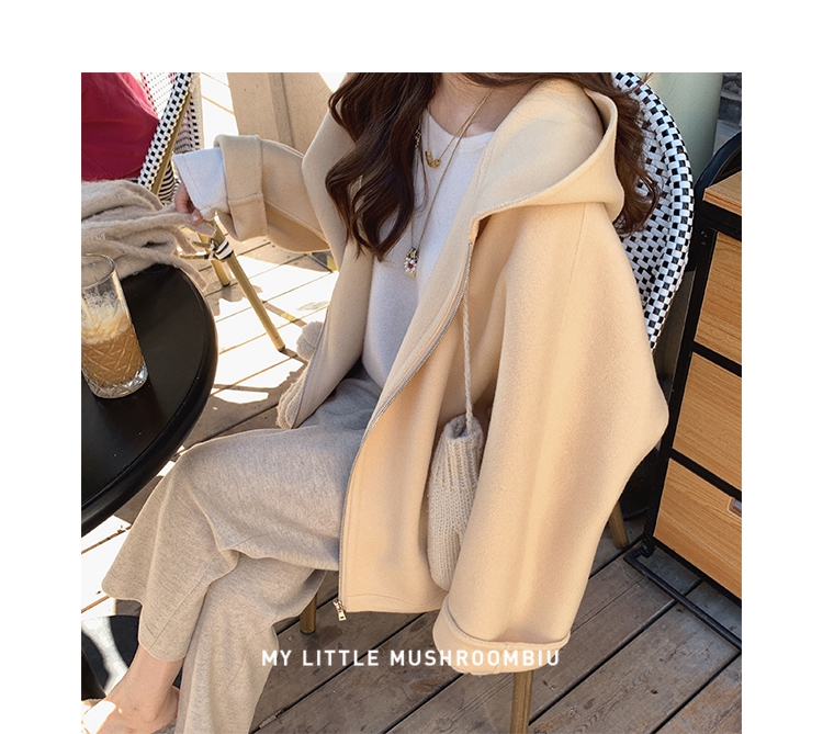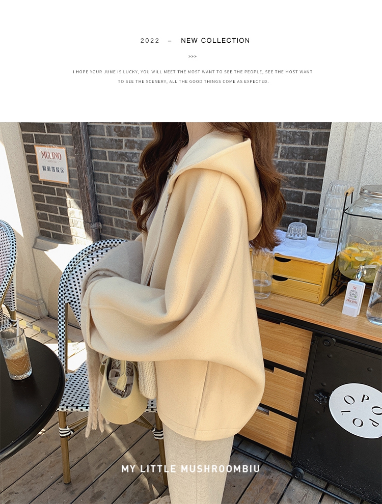 金蘑菇菇 自制线 玛奇朵 / 定染羊绒新季弧度大衣 连帽双面呢外套