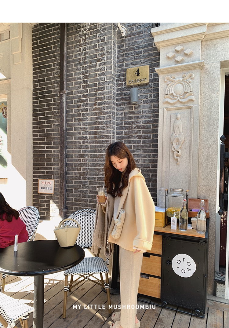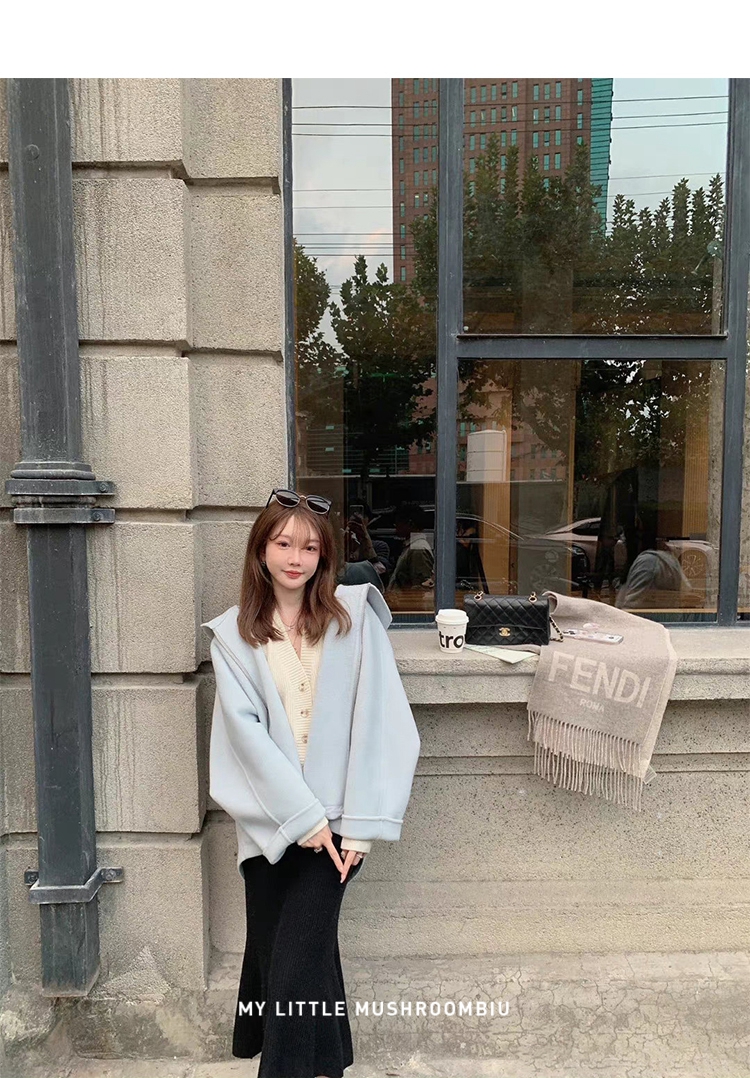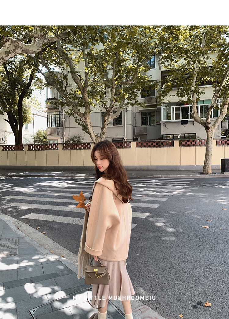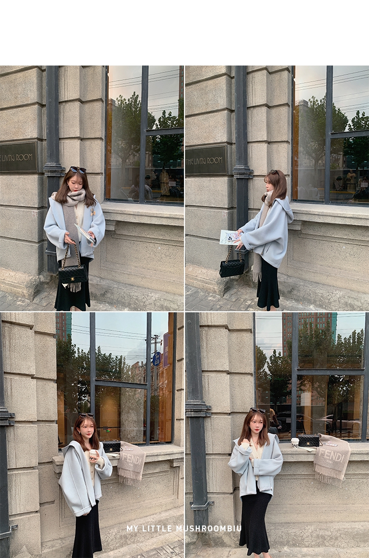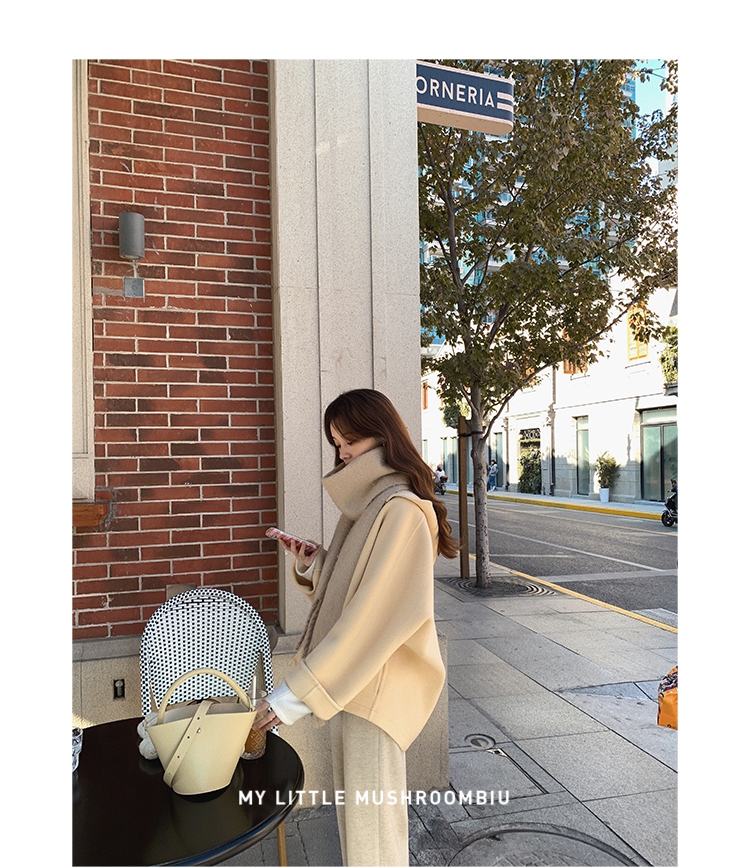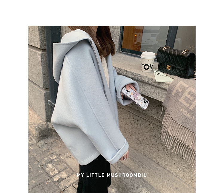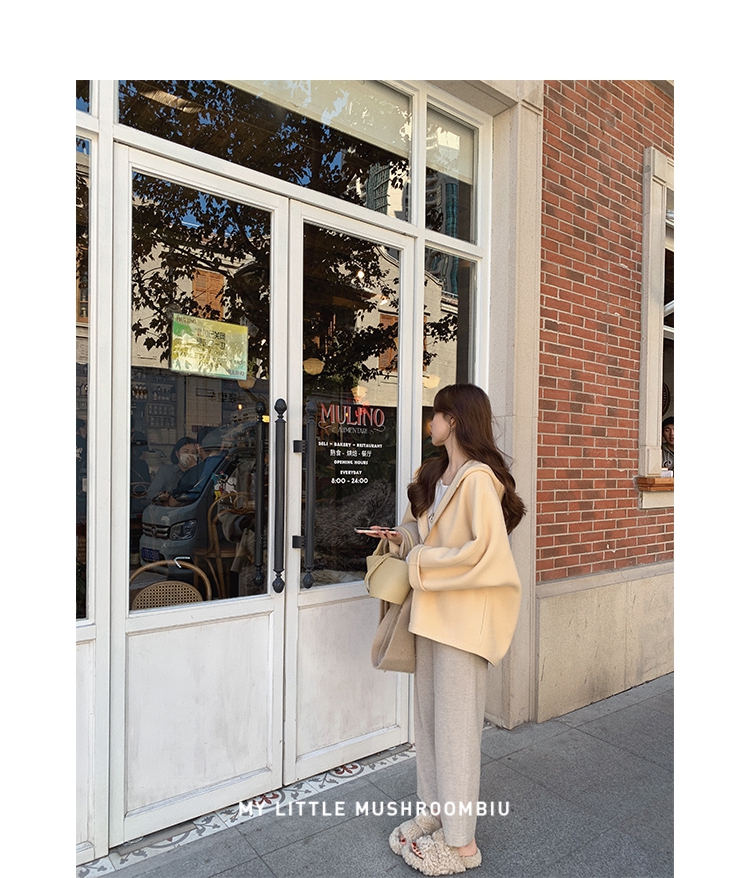 金蘑菇菇 自制线 玛奇朵 / 定染羊绒新季弧度大衣 连帽双面呢外套