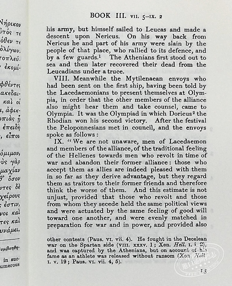 9780674991224 History of the Peloponnesian War, Volume III,Books 5-6(Loeb Classical Library) 修昔底德:伯罗奔尼撒战争史,卷5-6(共8卷)(洛布古典丛书)(原文希英对照版)