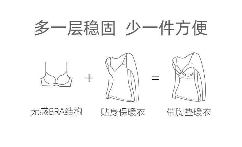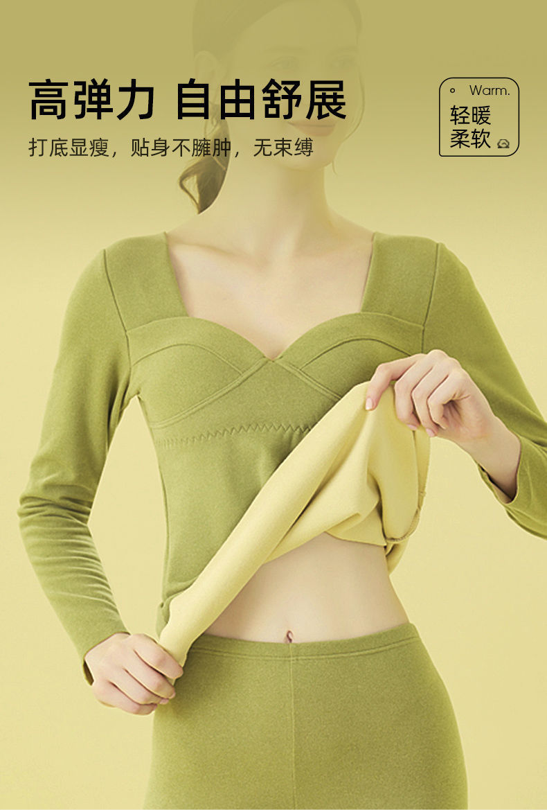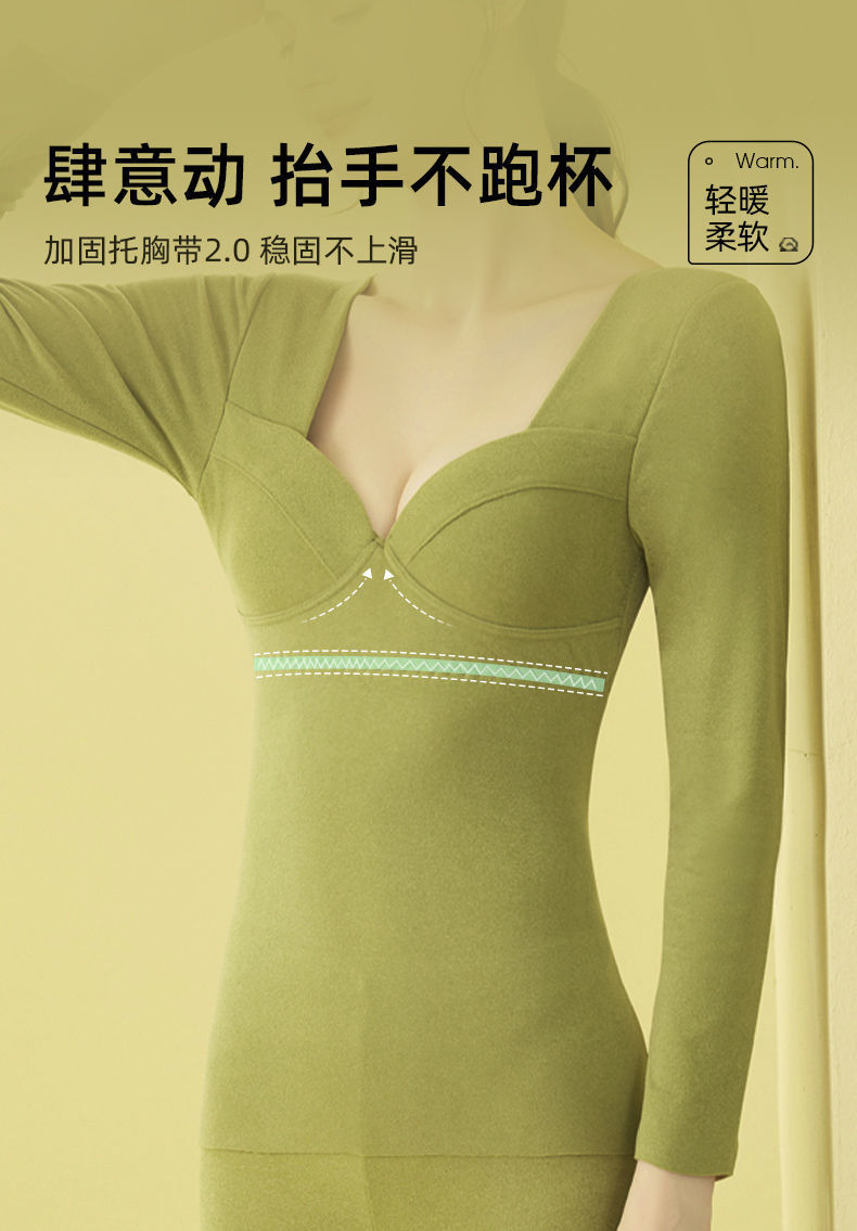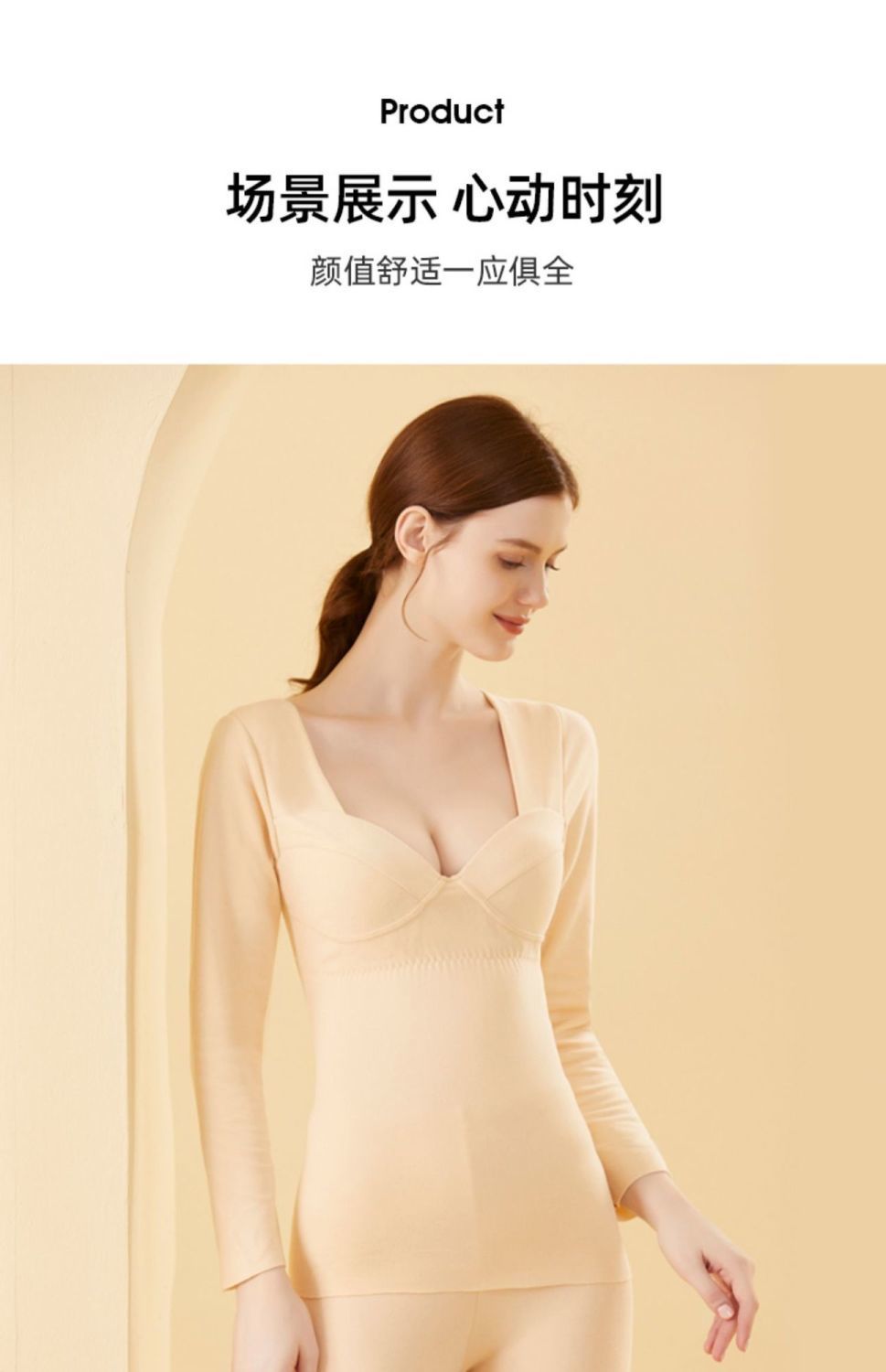 【低领显胸性感保暖秋衣秋裤套装】无痕内衣带胸垫打底衫 薄可外穿冬