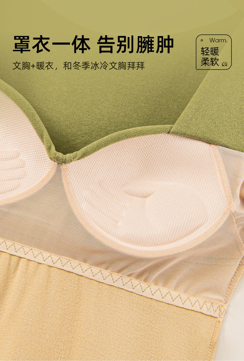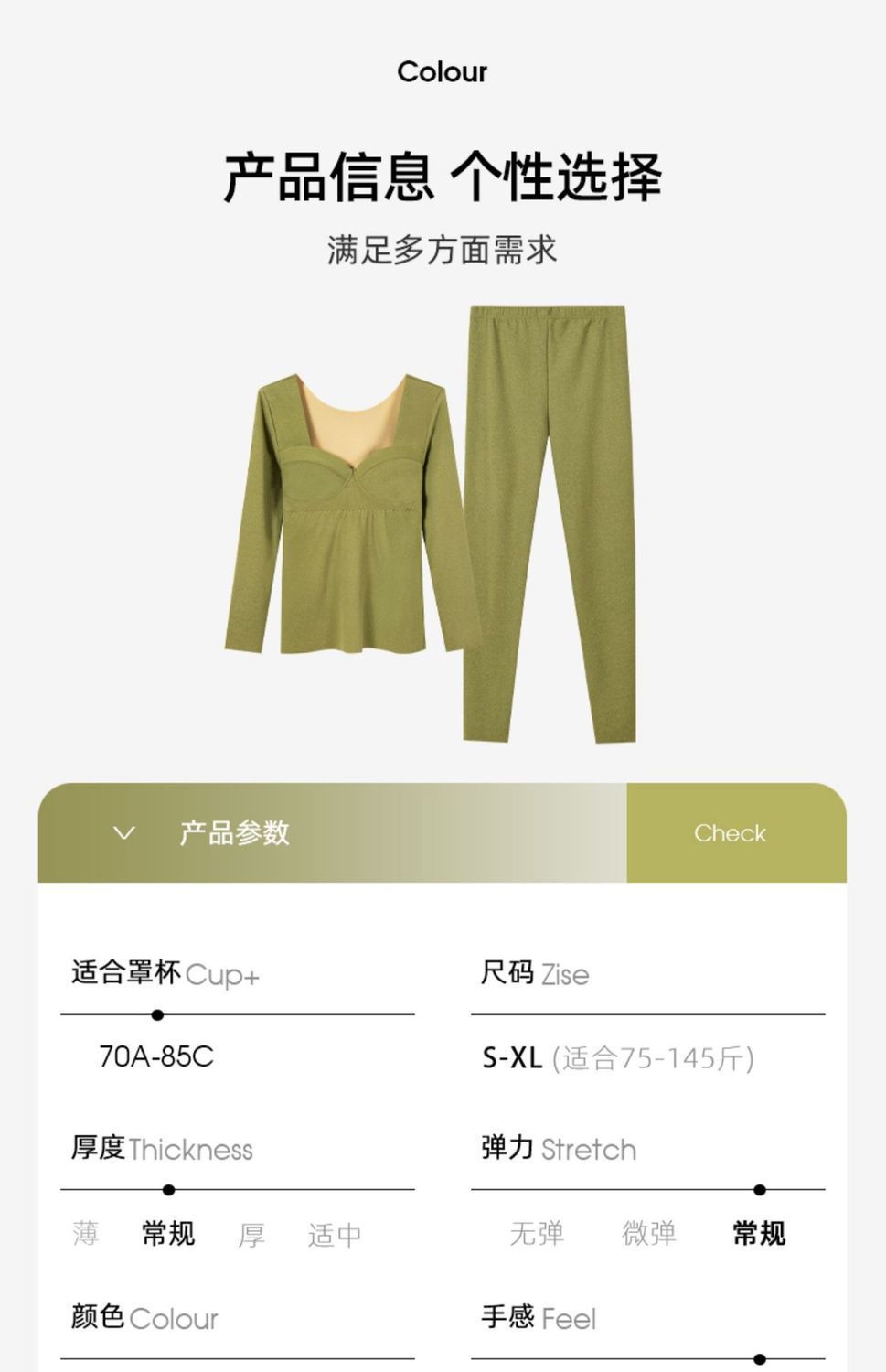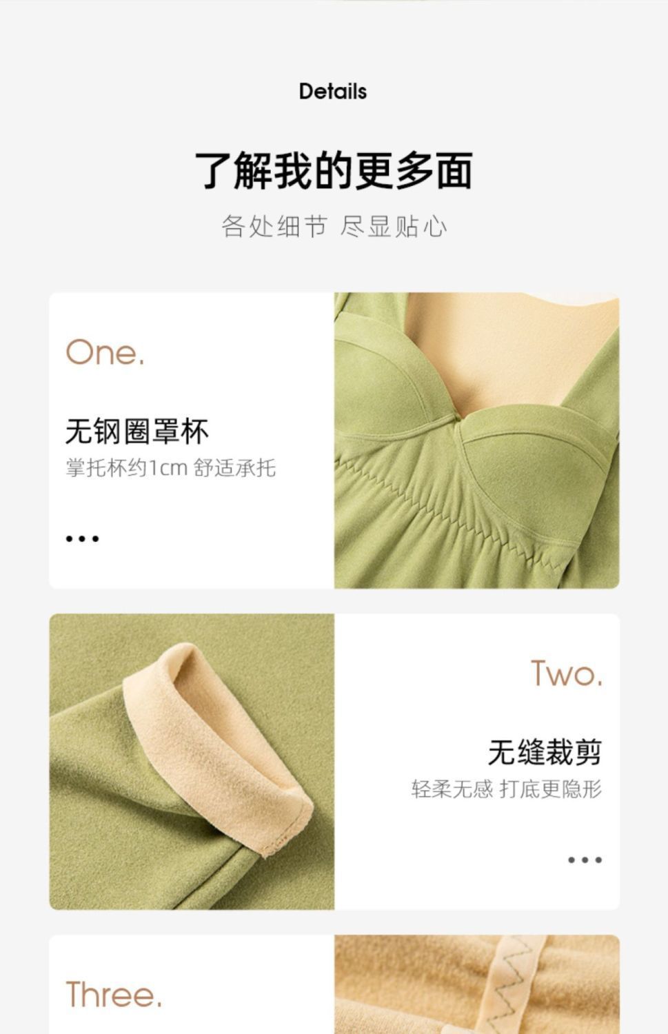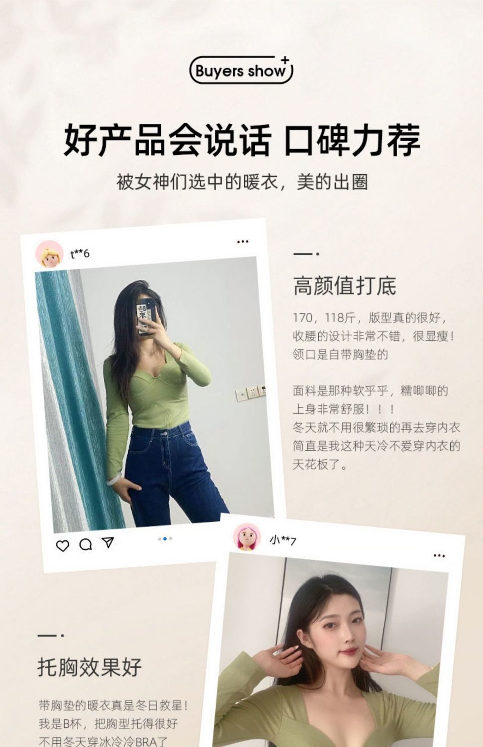 【低领显胸性感保暖秋衣秋裤套装】无痕内衣带胸垫打底衫 薄可外穿冬