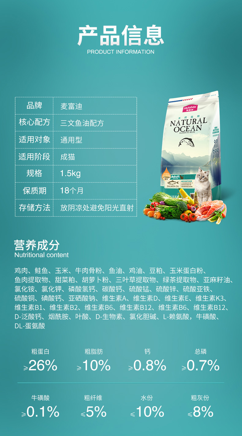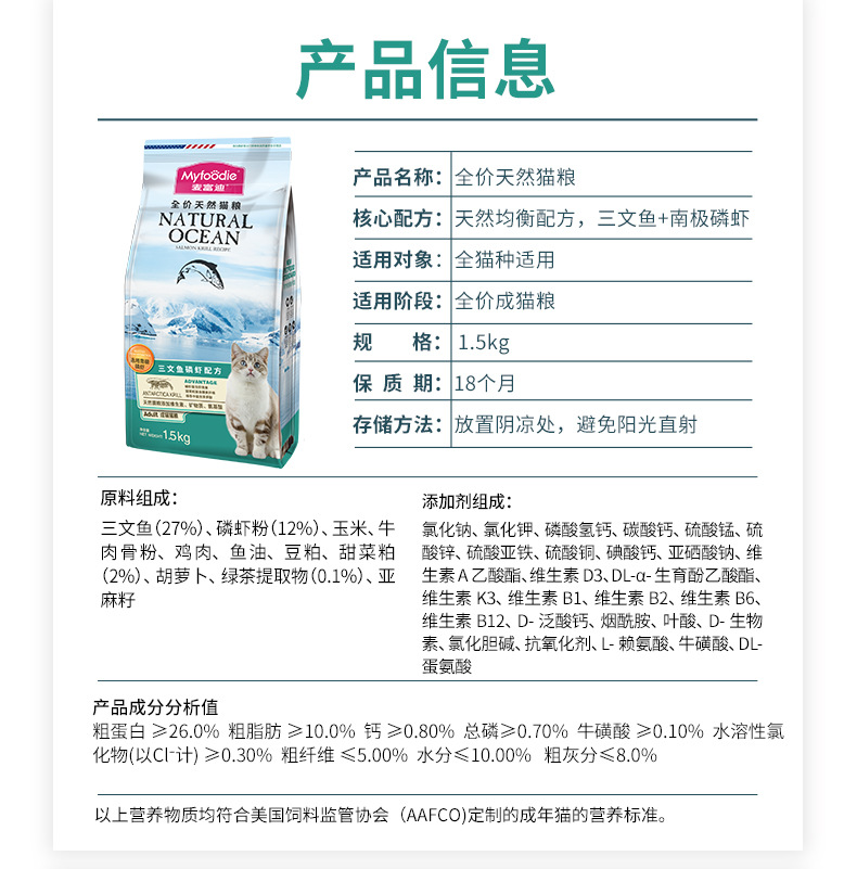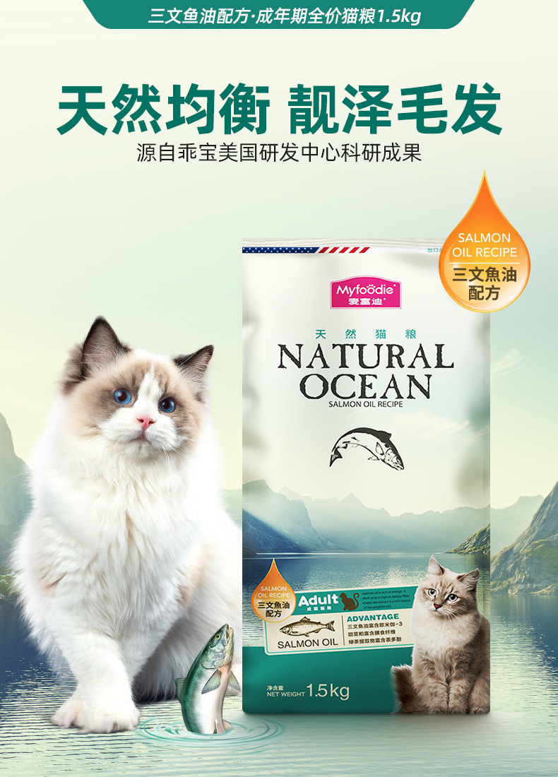 麦富迪三文鱼油成猫粮1.5kg蓝猫磷虾成猫粮美短英短美毛猫 天然粮