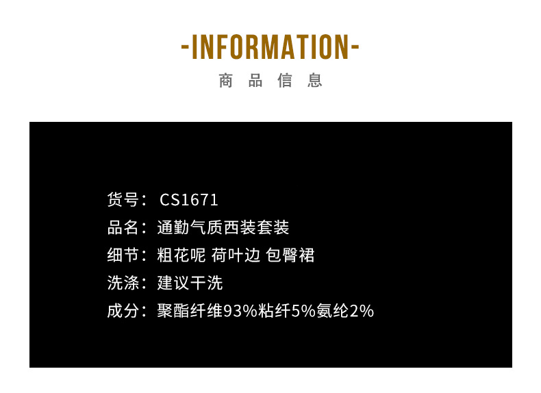 IWY/法式方领气质名媛两件套女韩版时尚粗花呢小香风西装套装包臀裙CS1671