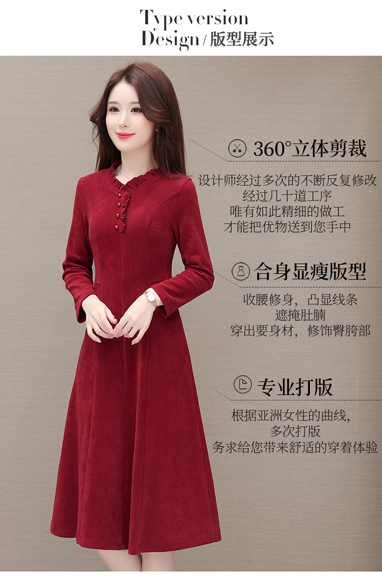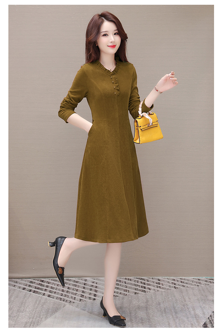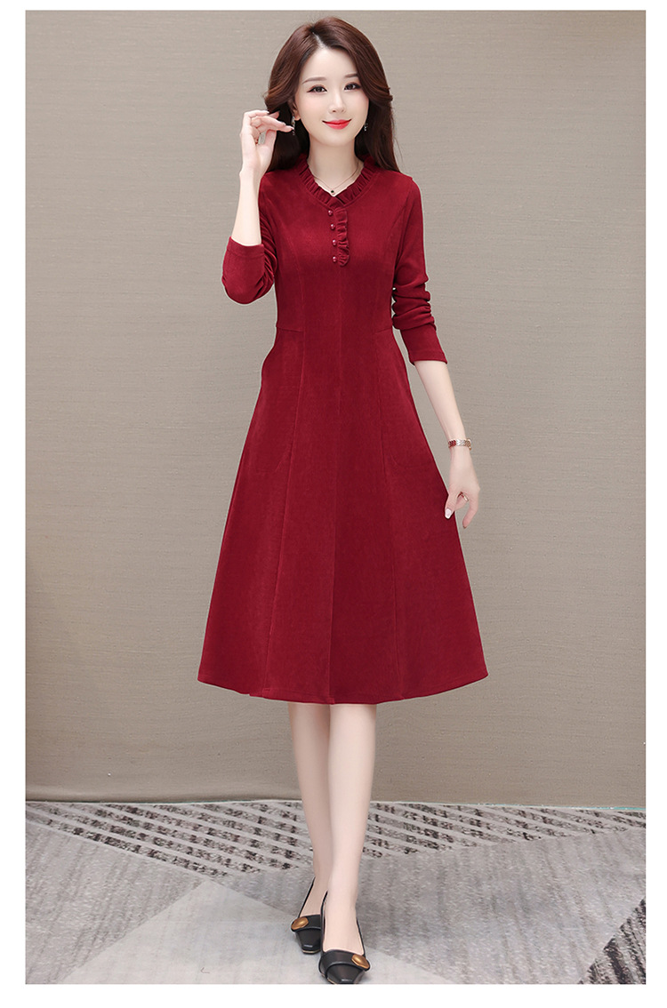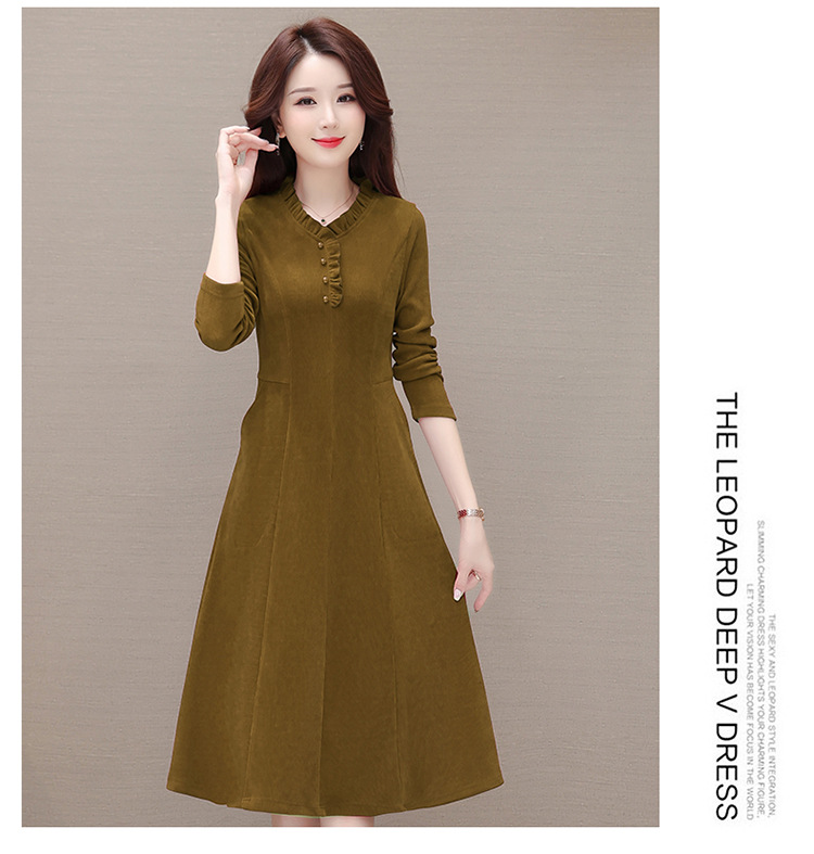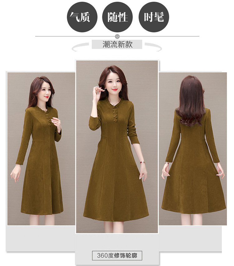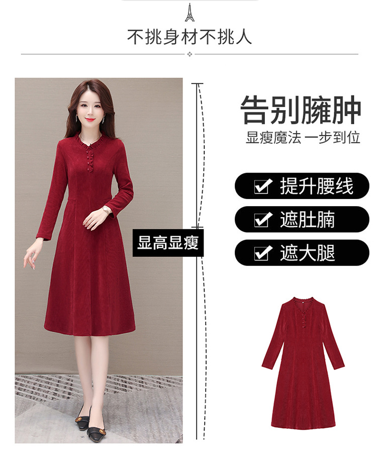 修身时尚,春款中长款简约A字裙V领长袖大码显瘦内搭打底裙QYM-XQD-X9276-L