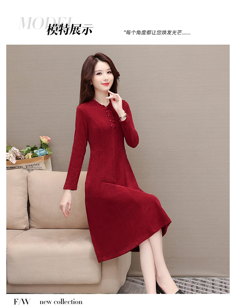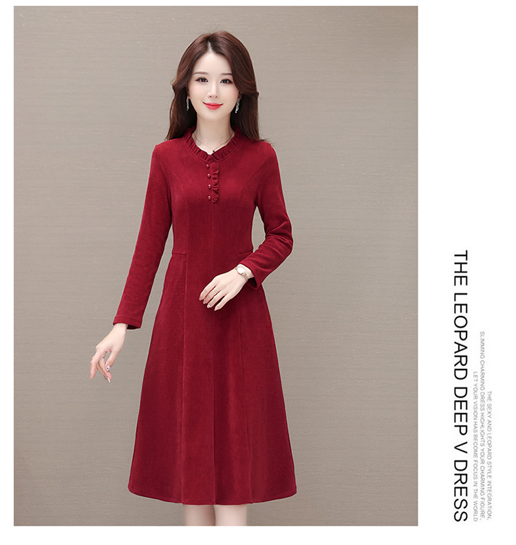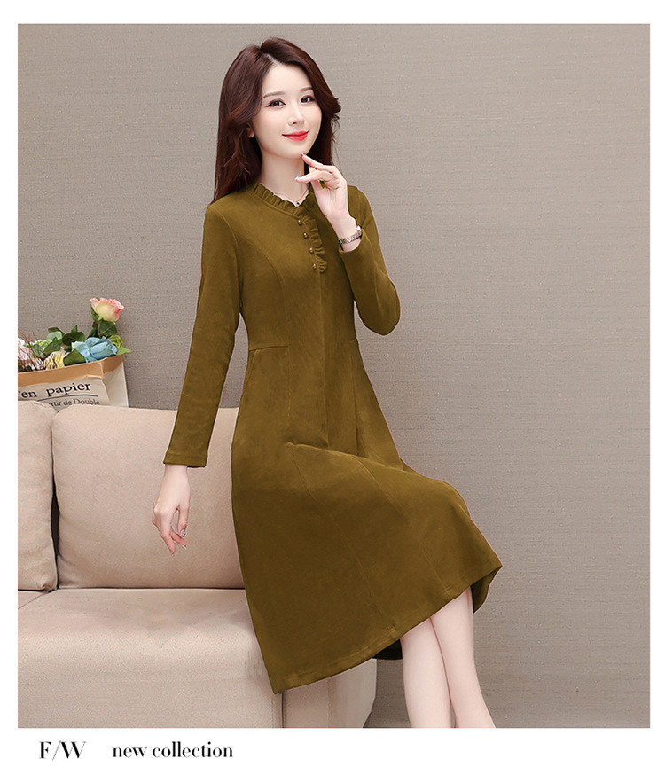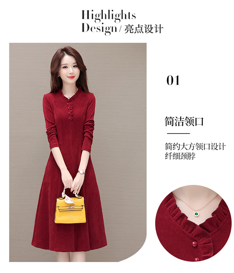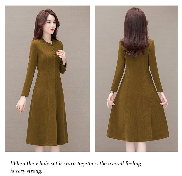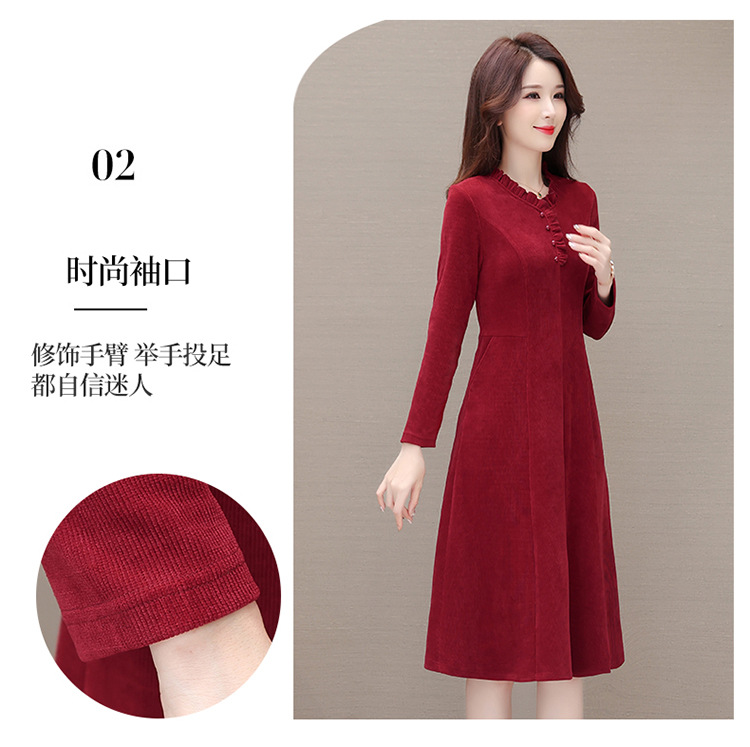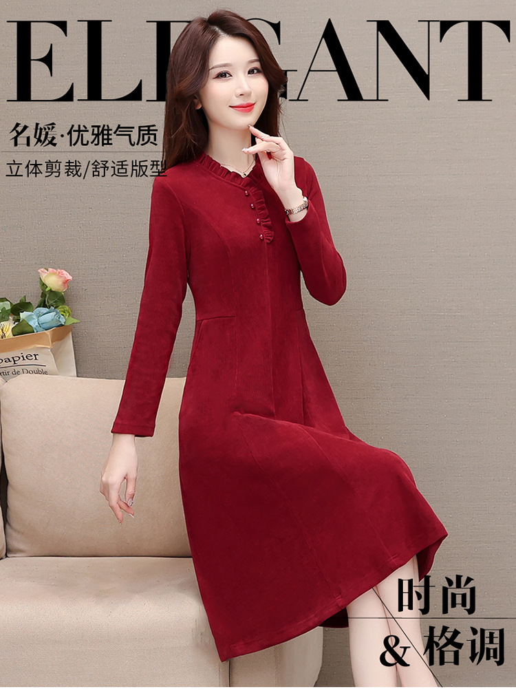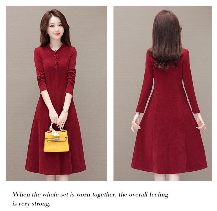 修身时尚,春款中长款简约A字裙V领长袖大码显瘦内搭打底裙QYM-XQD-X9276-L