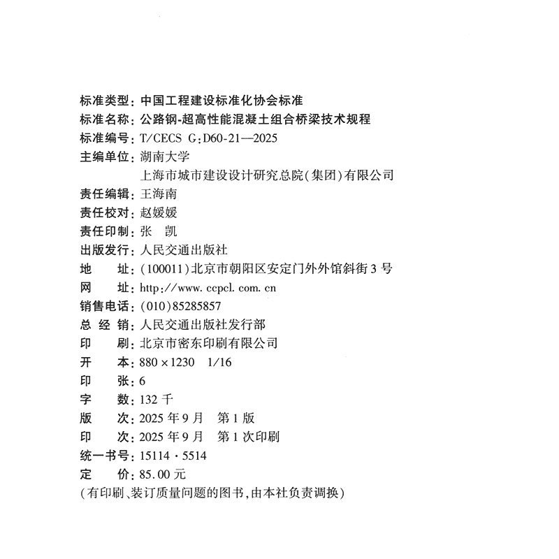 书名:公路钢-超高性能混凝土组合桥梁技术规程(T/CECS G:D60-21—2025)