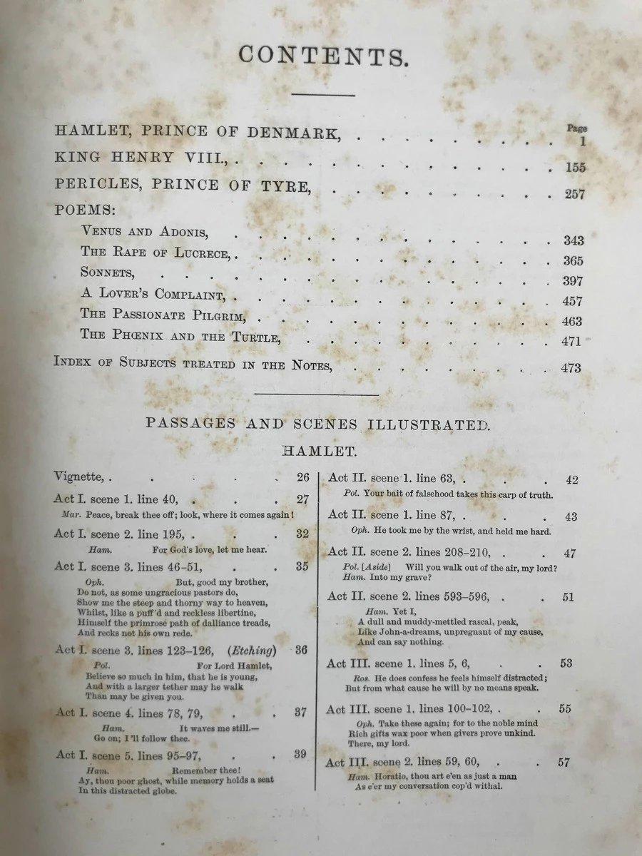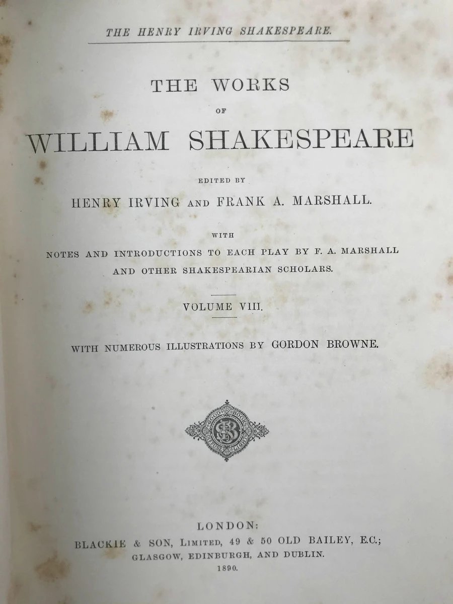 1890年 莎士比亚作品集(卷8,哈姆雷特/亨利八世/泰尔亲王佩里克里斯/诗歌) 数十幅插图 漆布精装18开