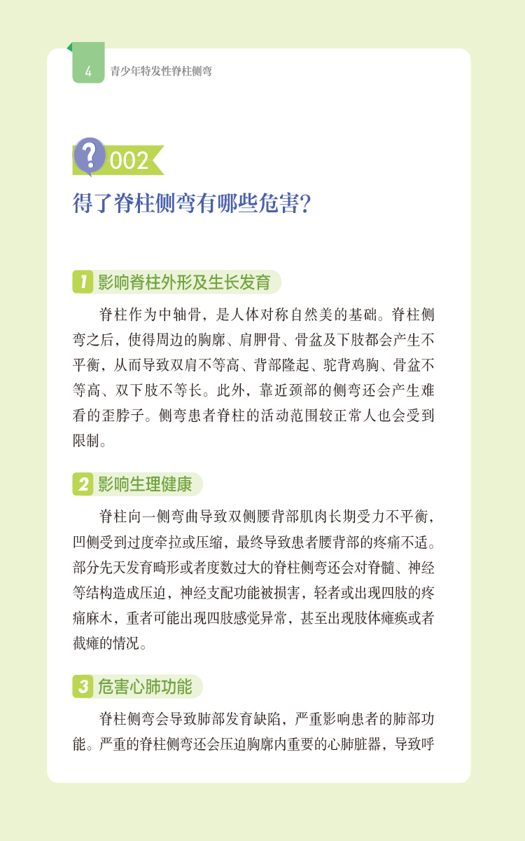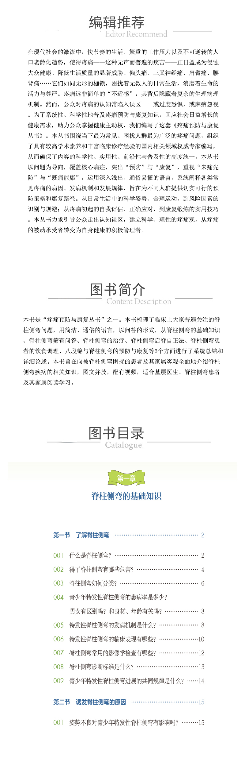 青少年特发性脊柱侧弯(疼痛预防与康复丛书)郭伟 主编 全面地介绍脊柱侧弯疾病的相关知识 配有视频 中国医药科技出版社