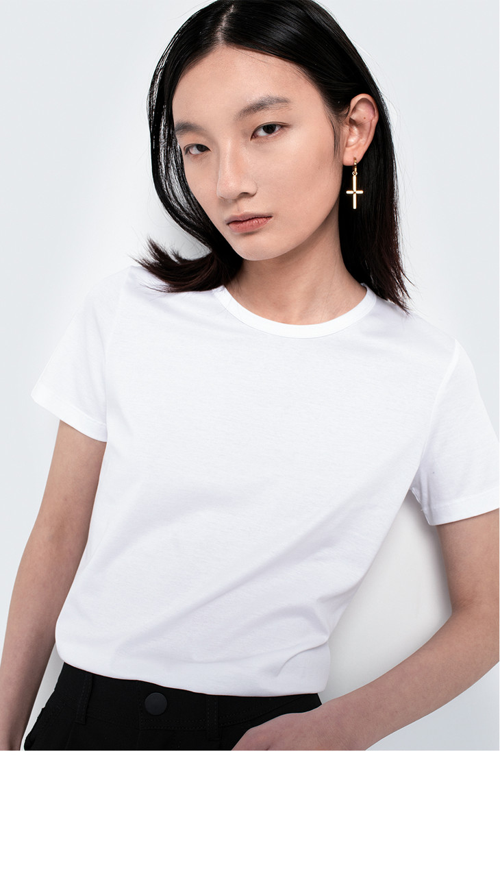 女士2020新疆长绒棉80支纱圆领白T恤