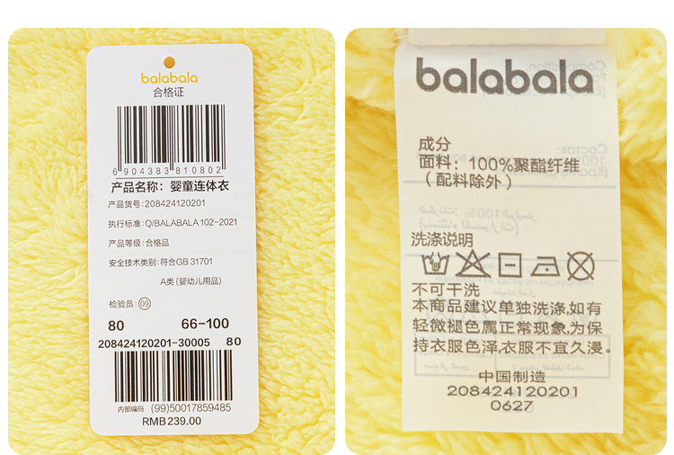 巴拉巴拉连体衣婴儿秋冬装外出宝宝抱衣哈衣爬服珊瑚绒新款萌