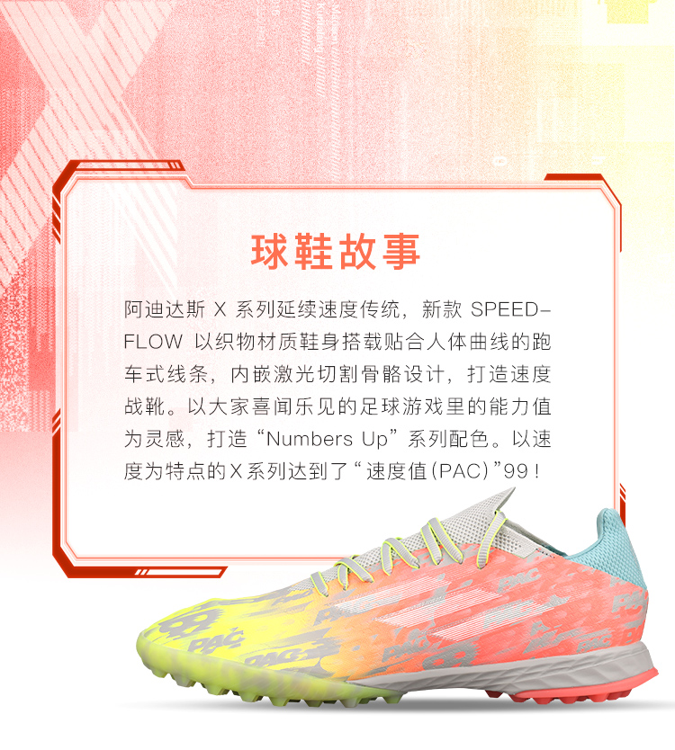 阿迪达斯 X SPEEDFLOW.1 TF碎丁高端低帮足球鞋男 GX3771