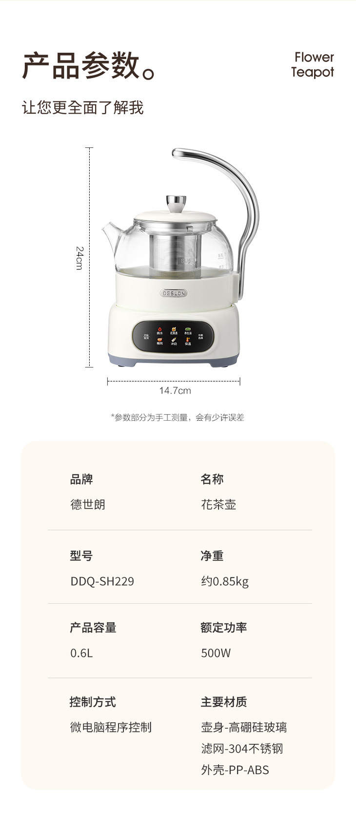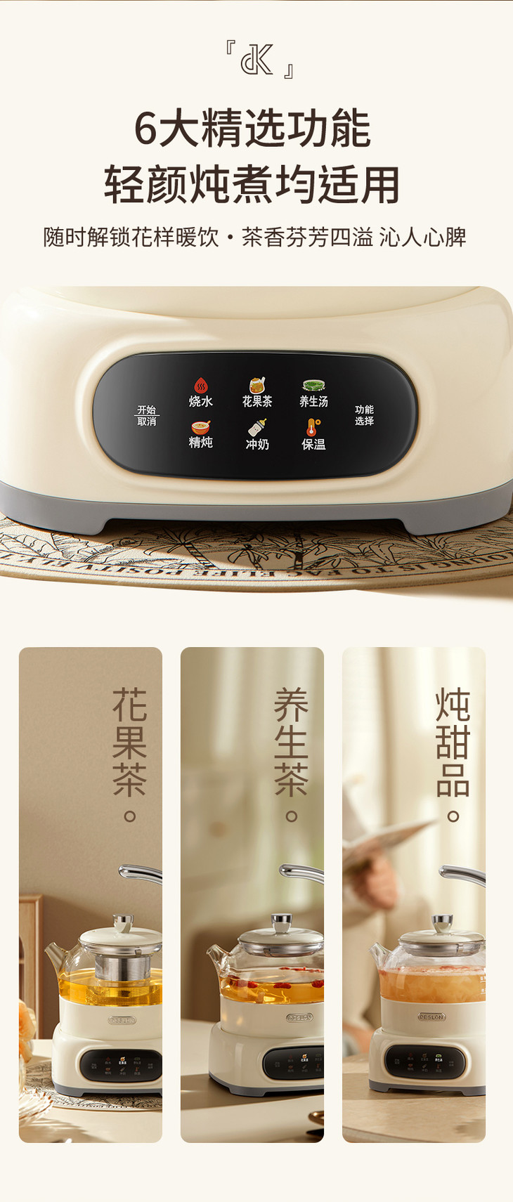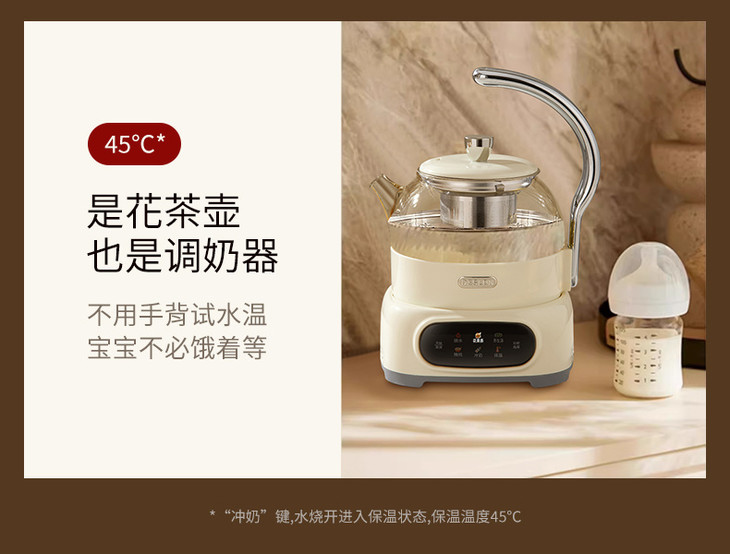 ✅精准控温技术适配不同花茶(如玫瑰、菊花)、果茶(柠檬、山楂)的冲泡需求,释放营养成分更充分