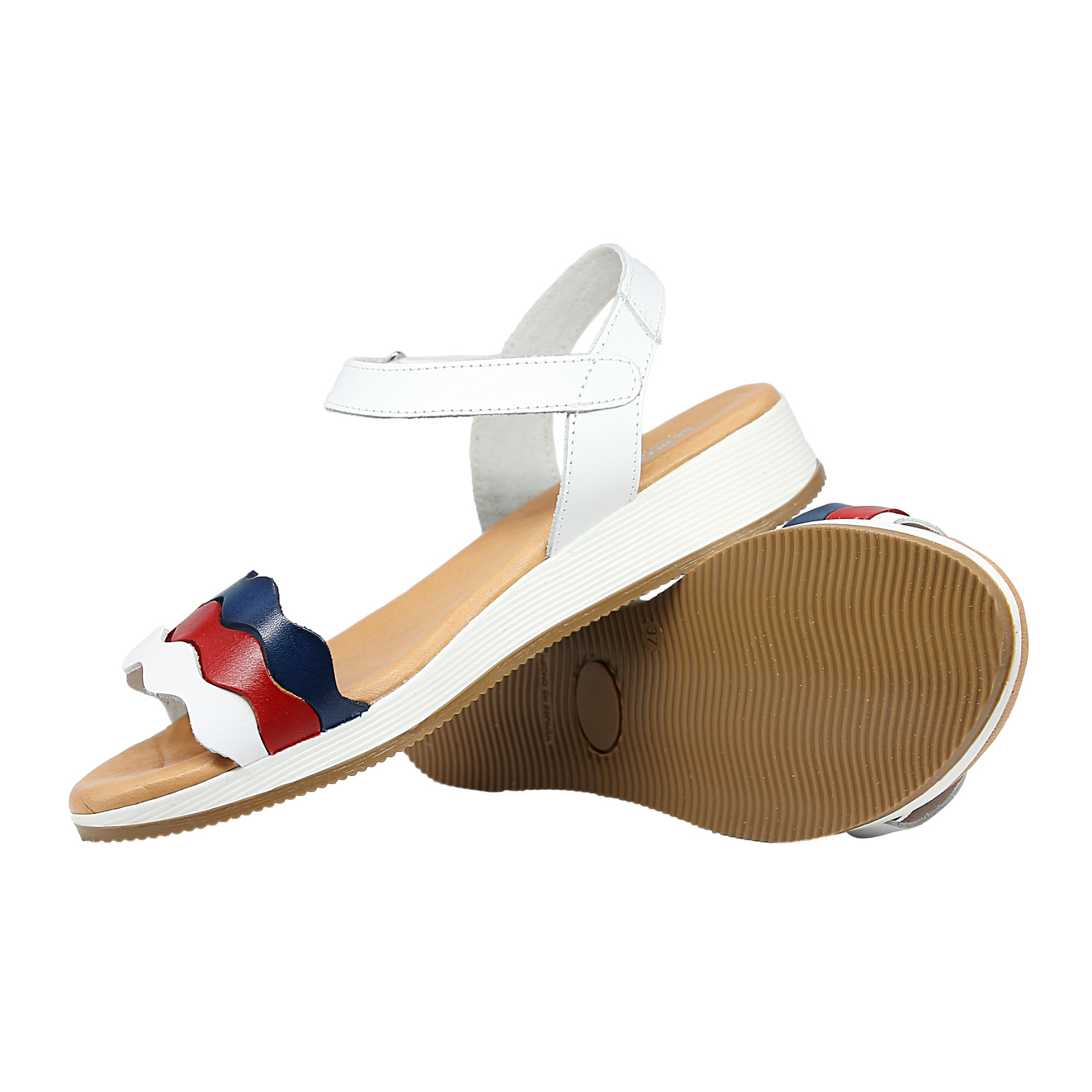 西班牙原产优雅超舒适女士皮凉鞋N1225-白色/蓝色/红色