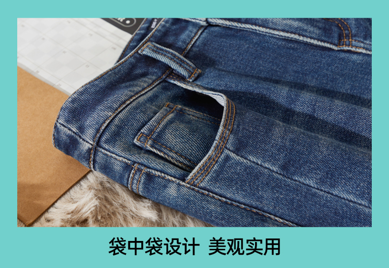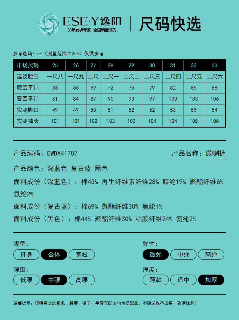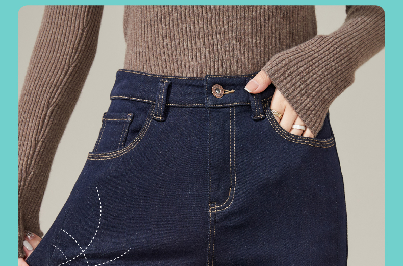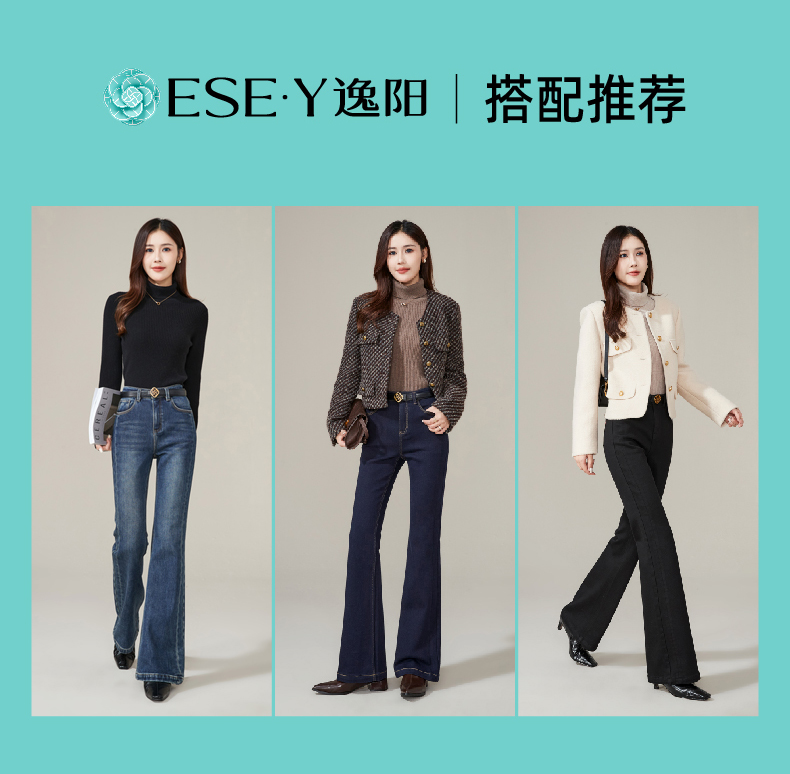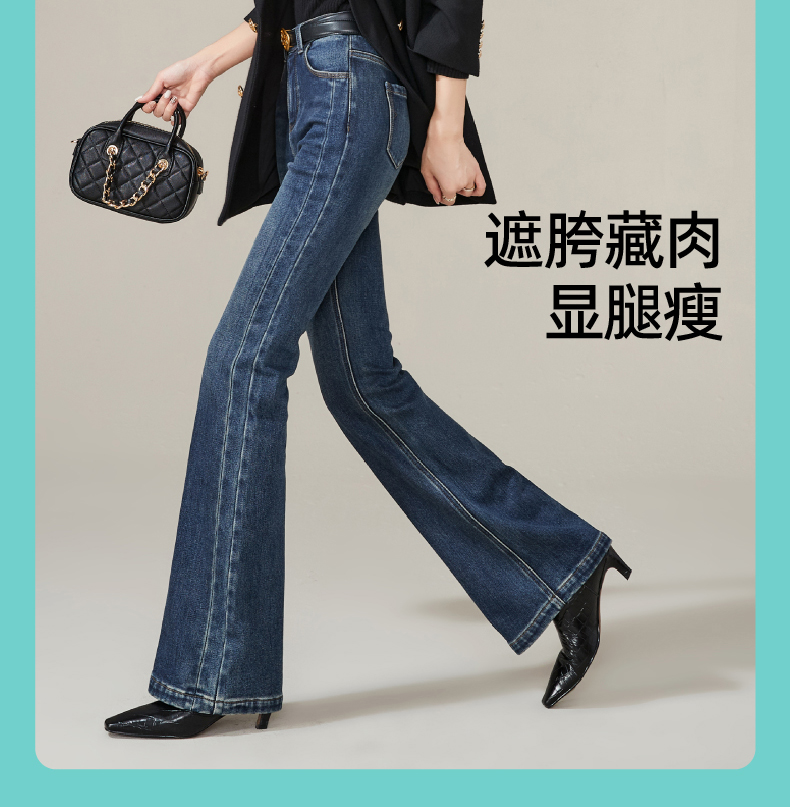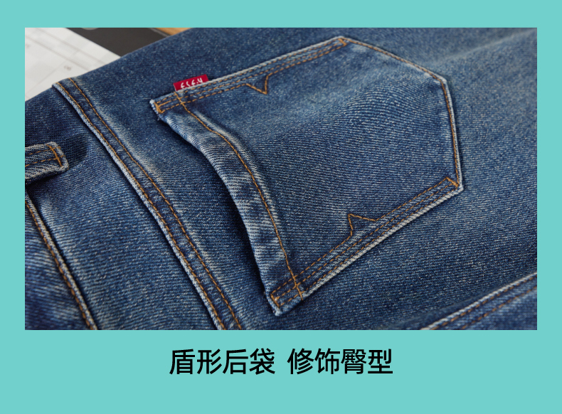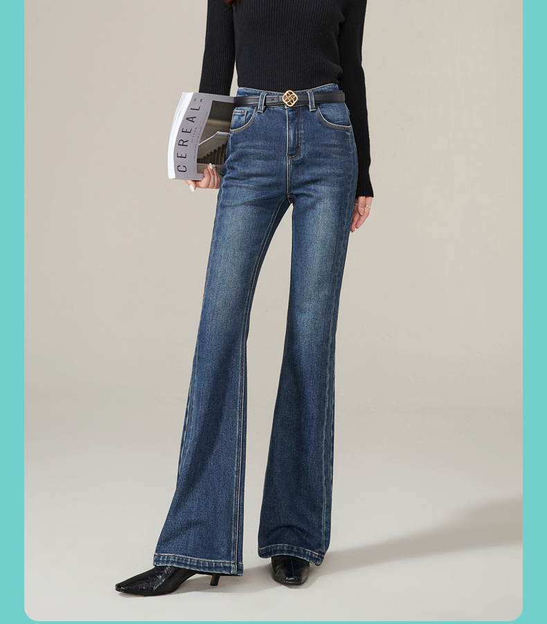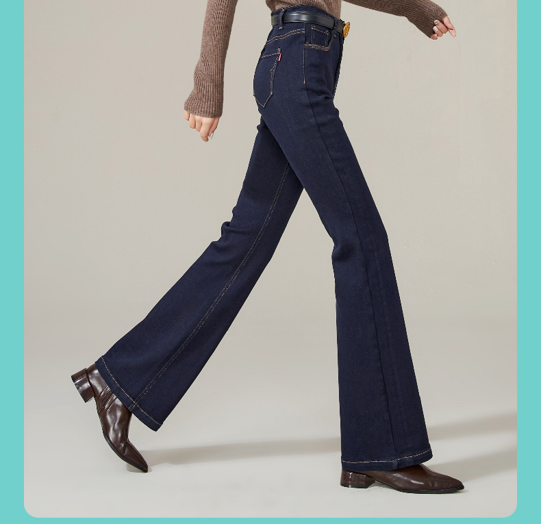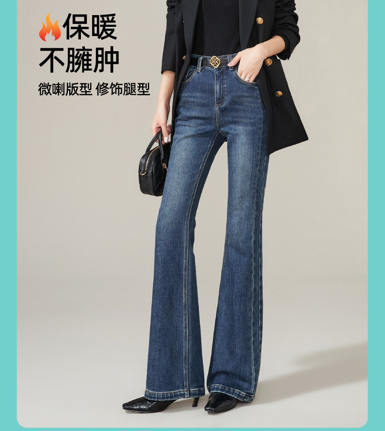 【加绒-微喇牛仔】逸阳冬季修身弹力显瘦显高微喇长牛仔裤子1707