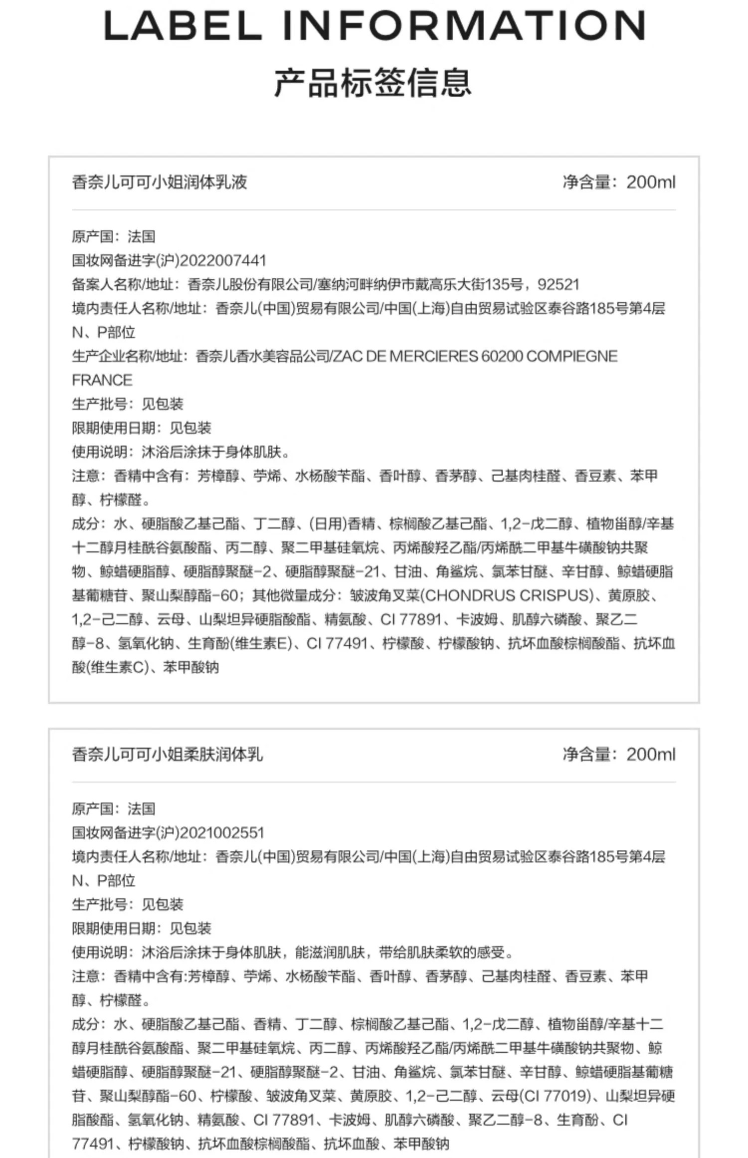 【中欧班列精选】法国 Chanel 香奈儿可可小姐柔肤润体乳 200mlYBF