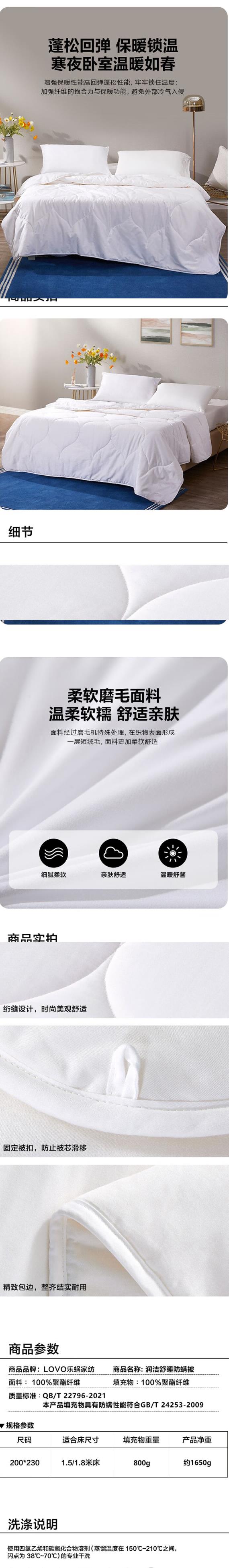 LOVO罗莱旗下乐蜗家纺防螨纤维四季被200*230【分仓直发,72小时发货,周末节假日不发货】