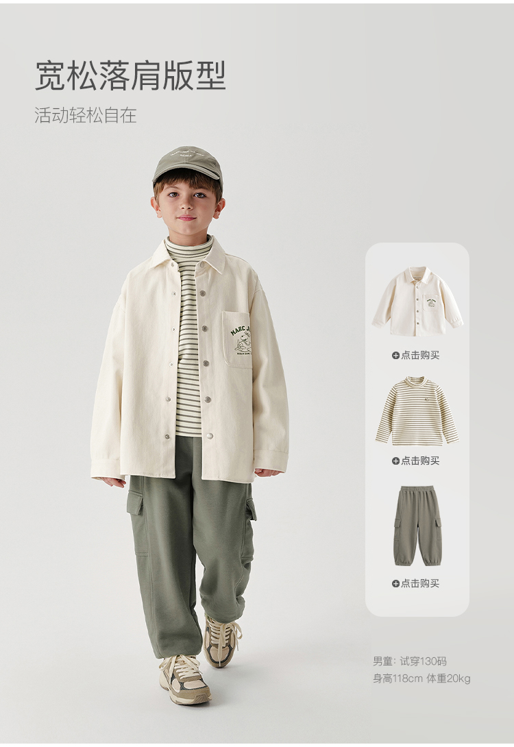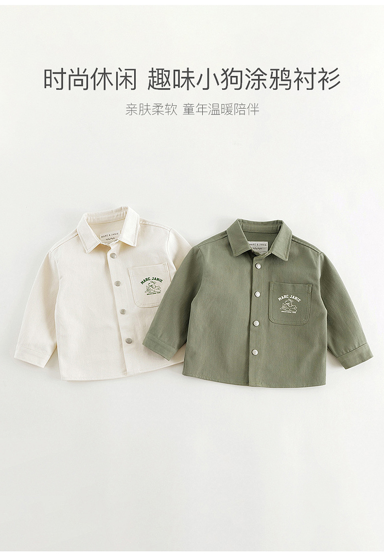 马克珍妮男童趣味小狗休闲外套儿童厚款衬衫2024年秋装新款241513