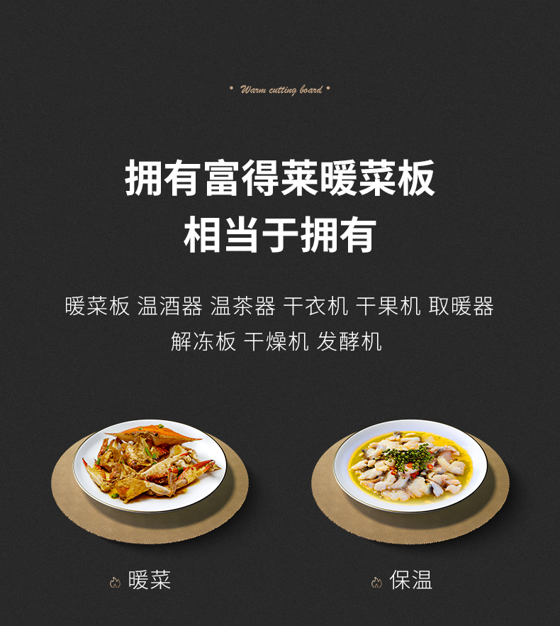 德国富得莱饭菜保温板热菜板家用暖菜板热菜神器加热暖菜盘保温桌面