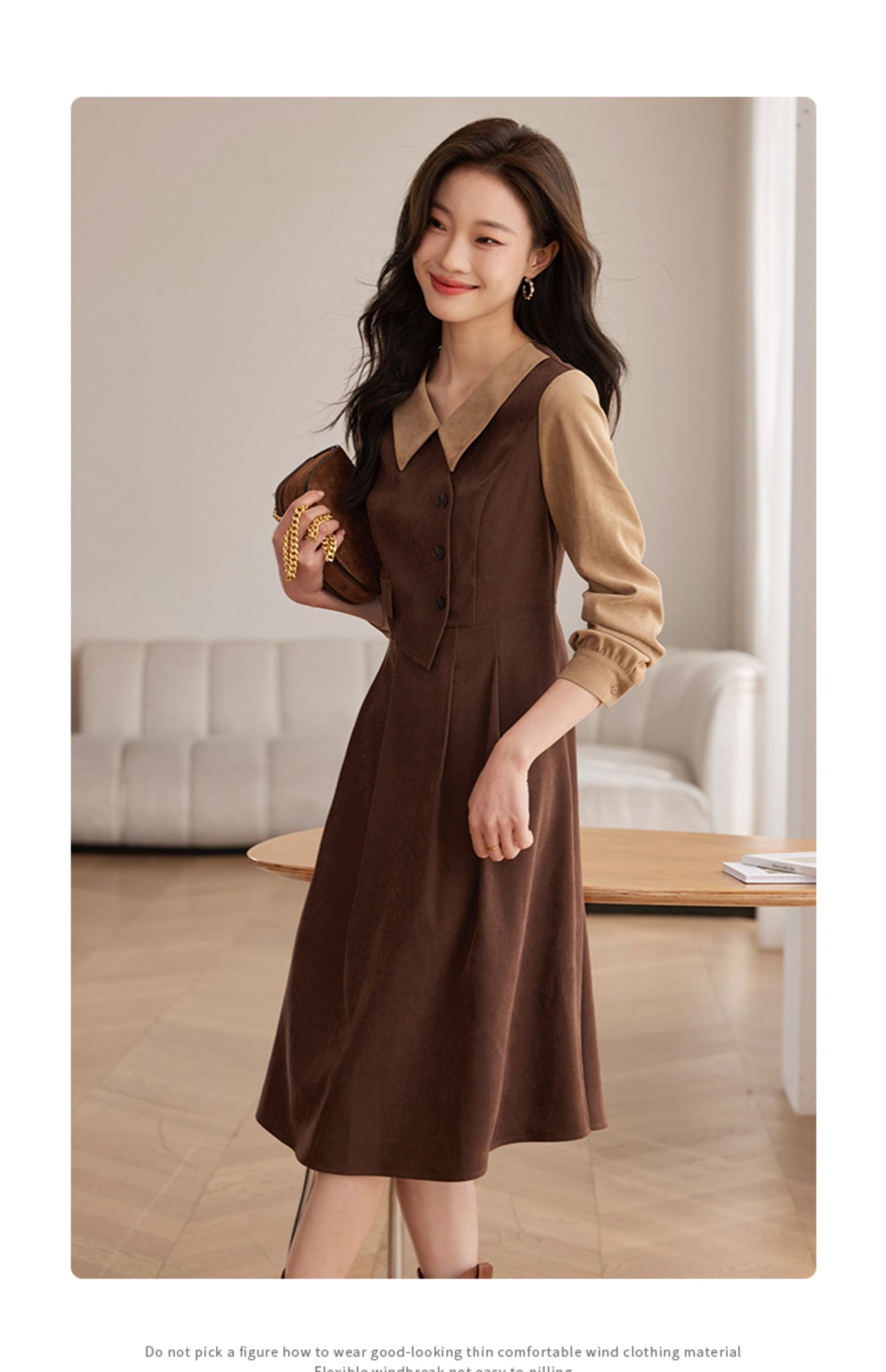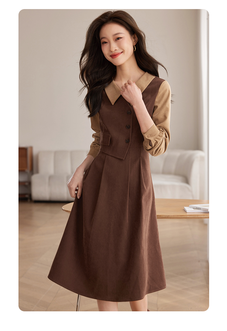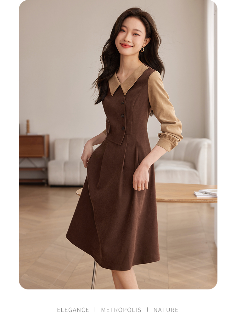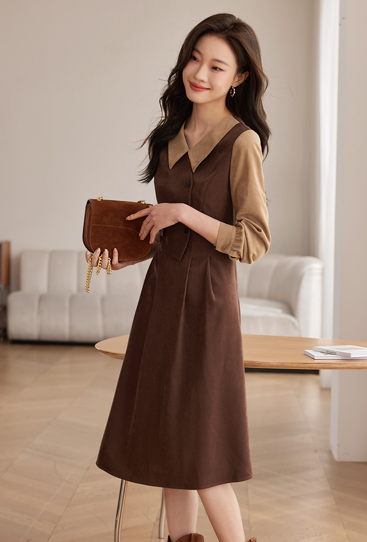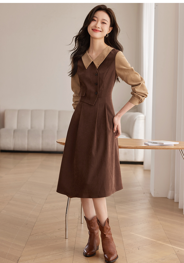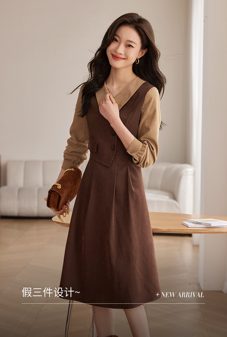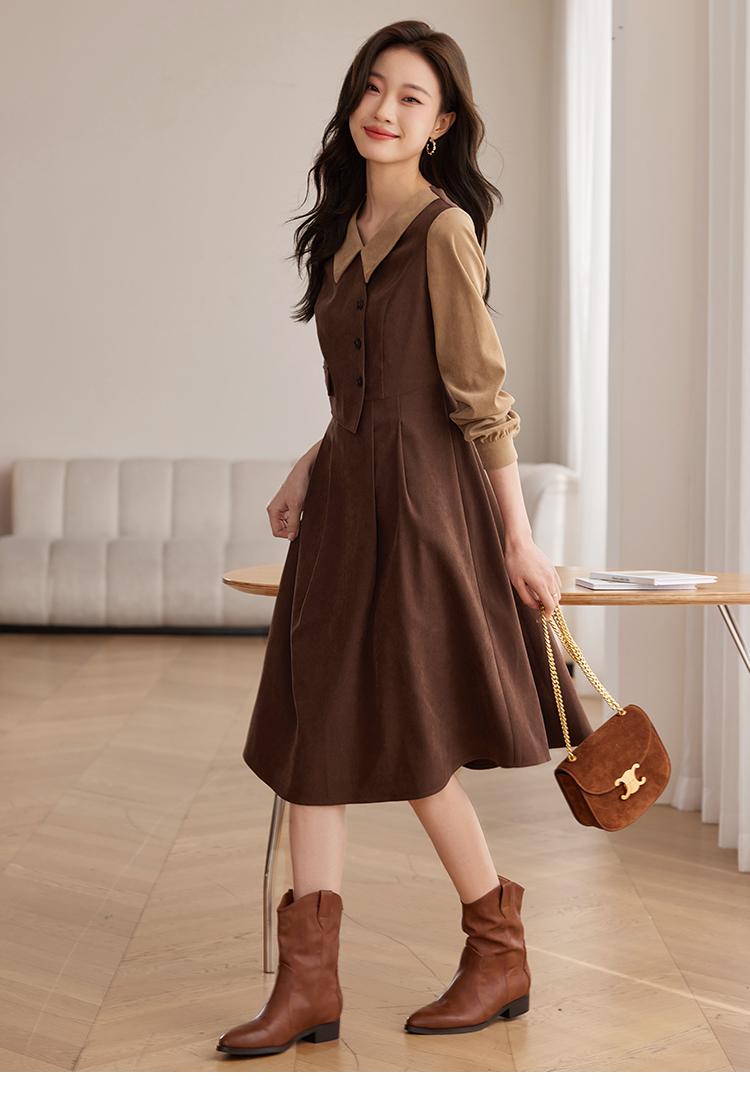 【专属特价】熙世界美拉德千金风假两件连衣裙女秋冬季高级感加厚磨绒收腰裙子
