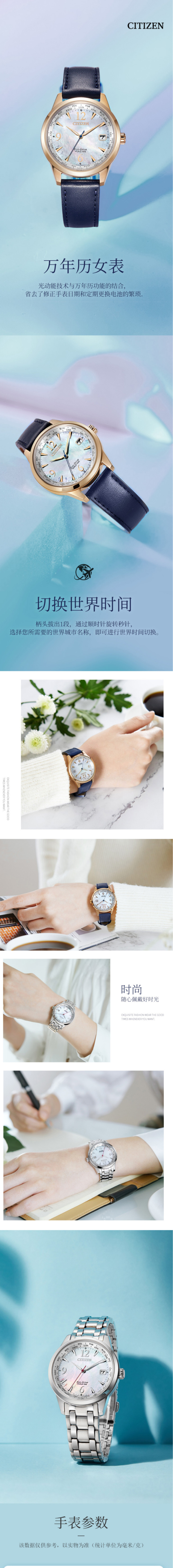 西铁城日本官方正品光动能皮带防水女表FC8003-06D