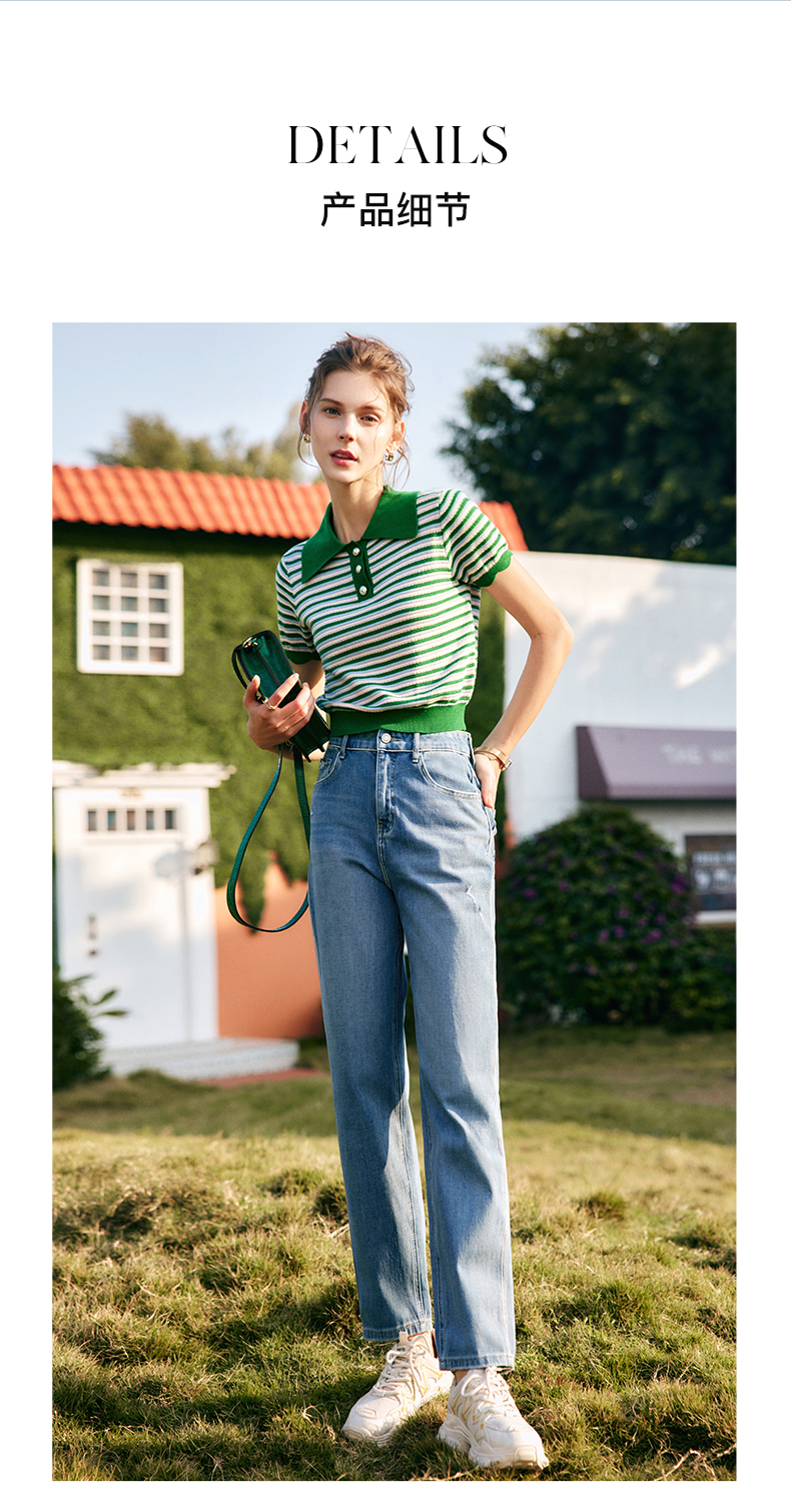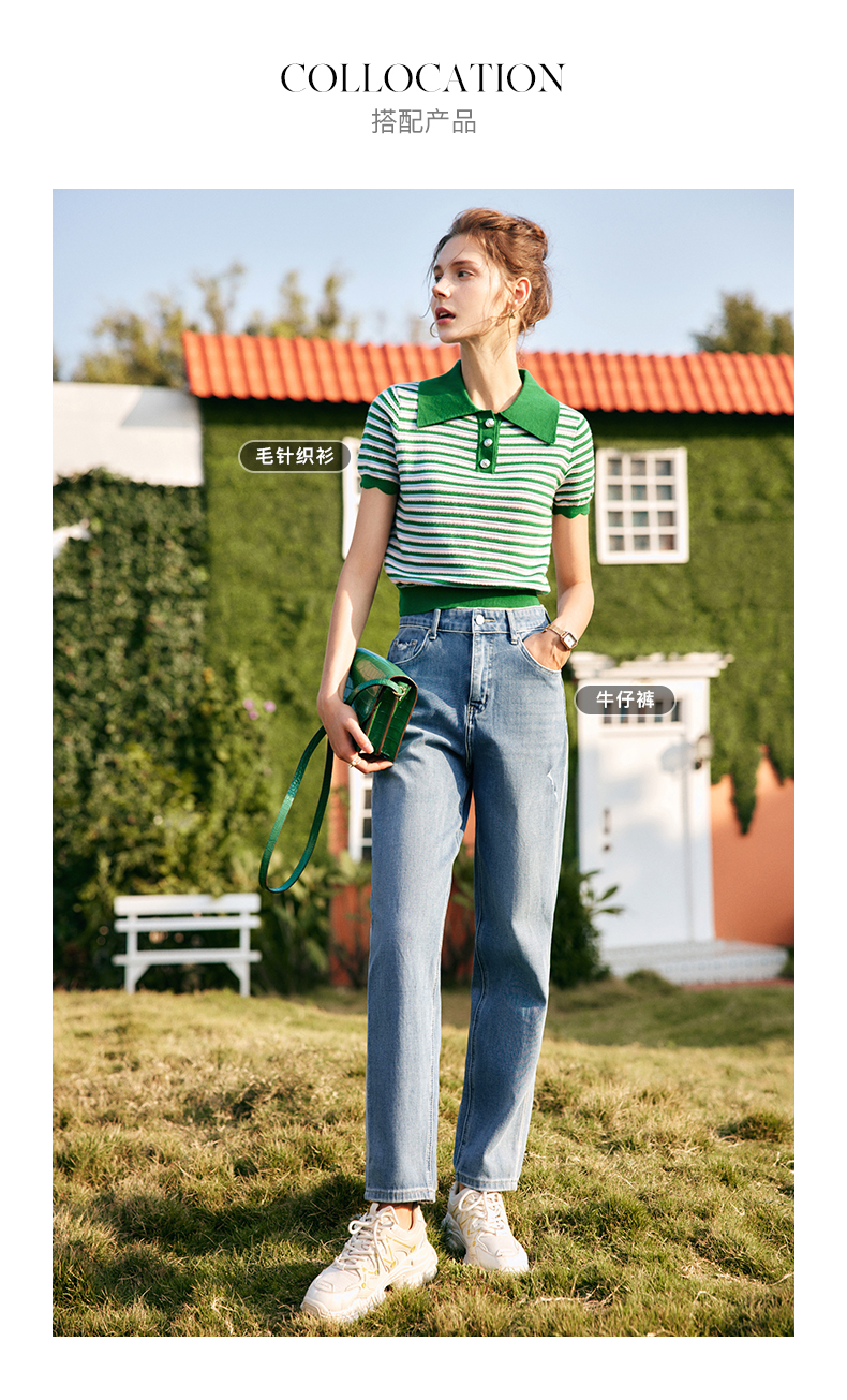 欧芮儿短袖针织t恤女冰丝薄款条纹新款2021圆领休闲套头上衣