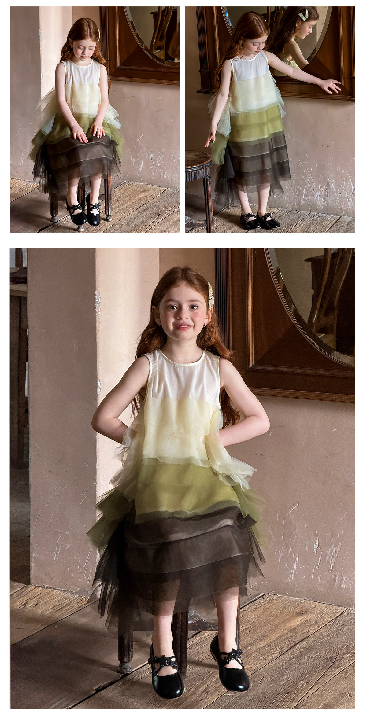 littletime女童网纱蛋糕连衣裙夏季渐变色公主裙生日礼服蓬蓬裙