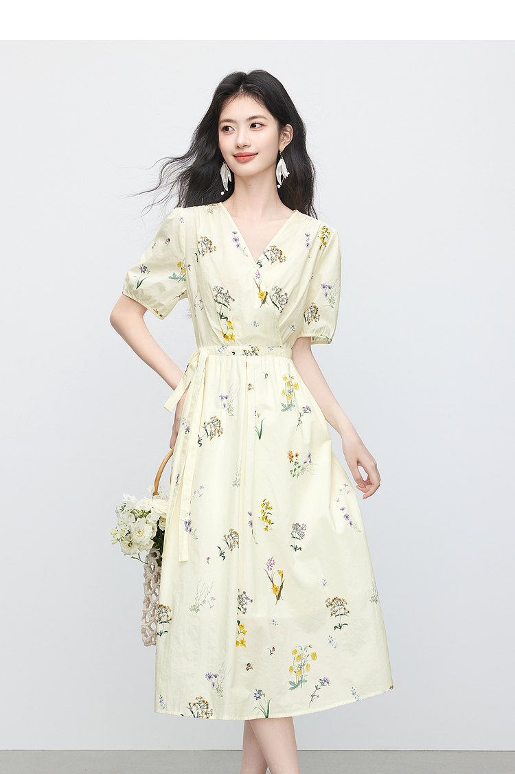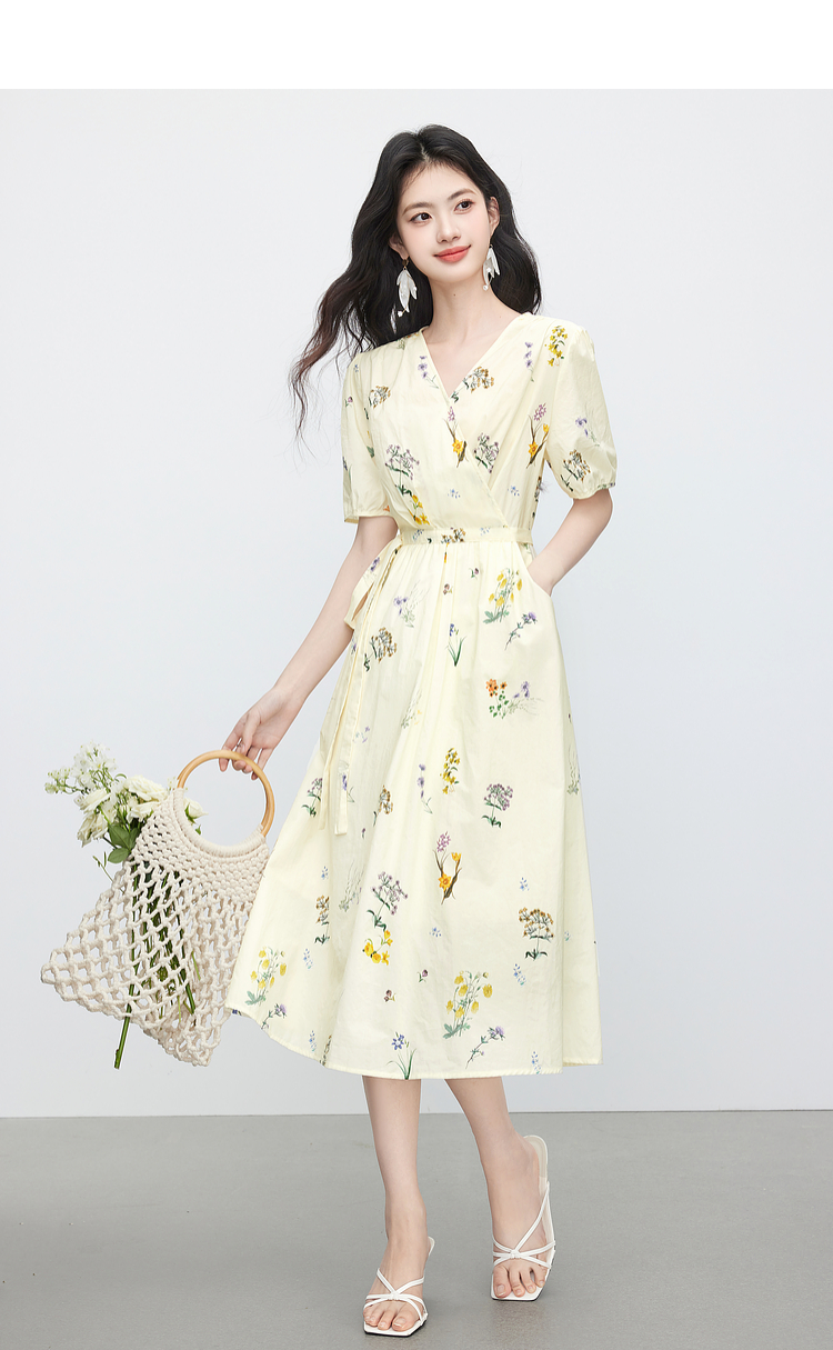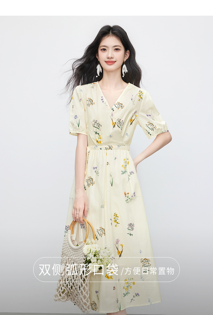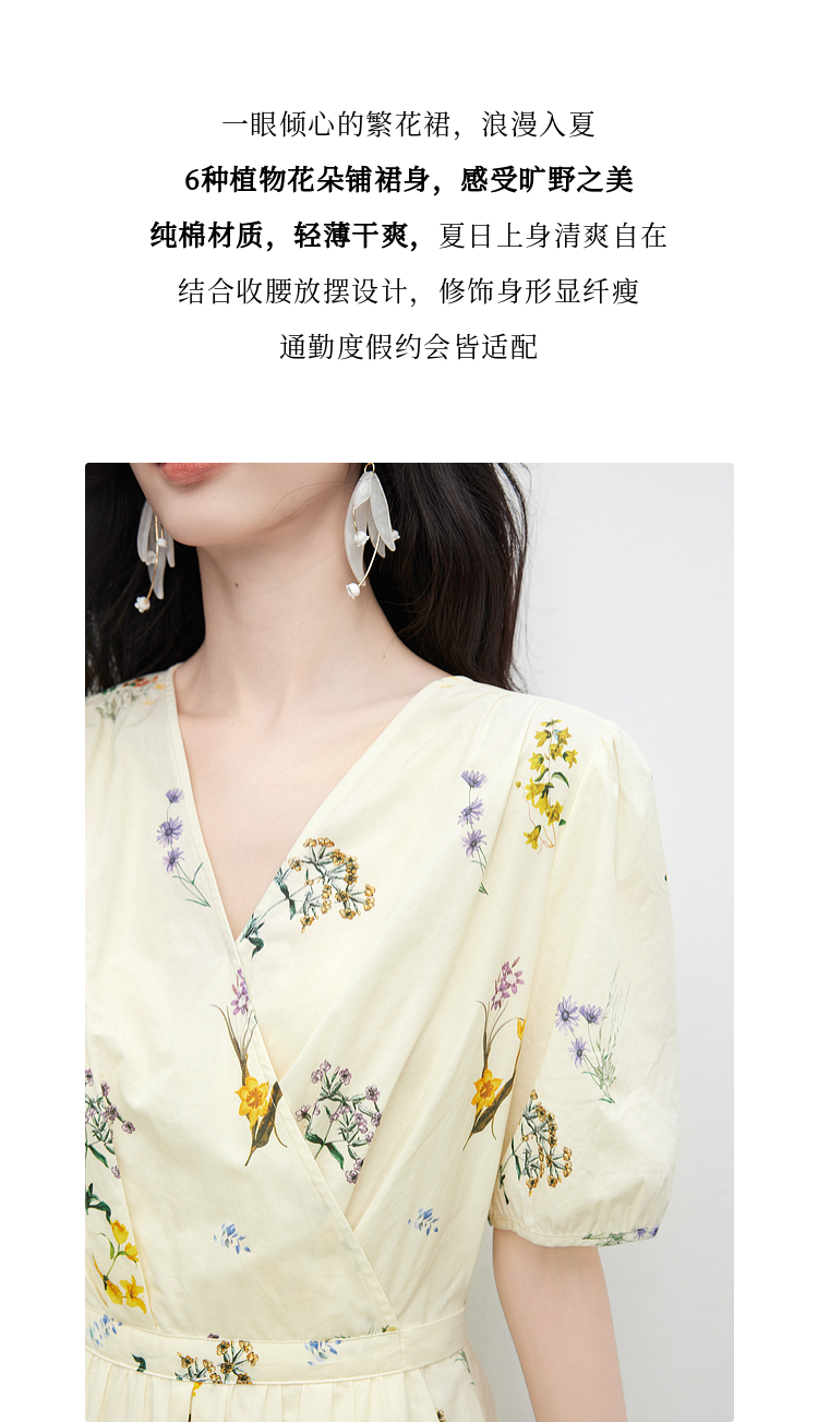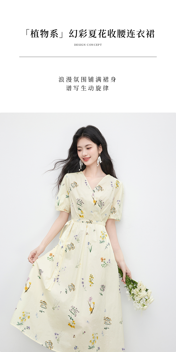 【周末秒杀】熙世界2025年新款法式植物碎花连衣裙女收腰显瘦夏日绝美V领裙子