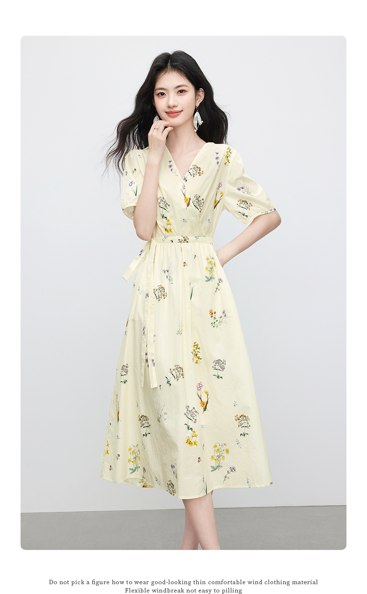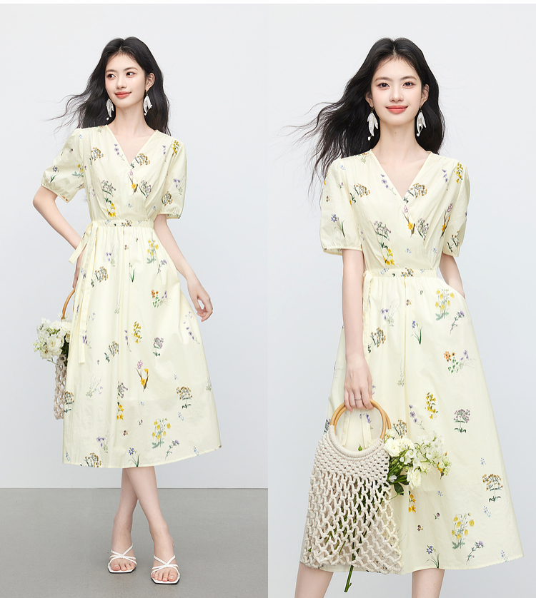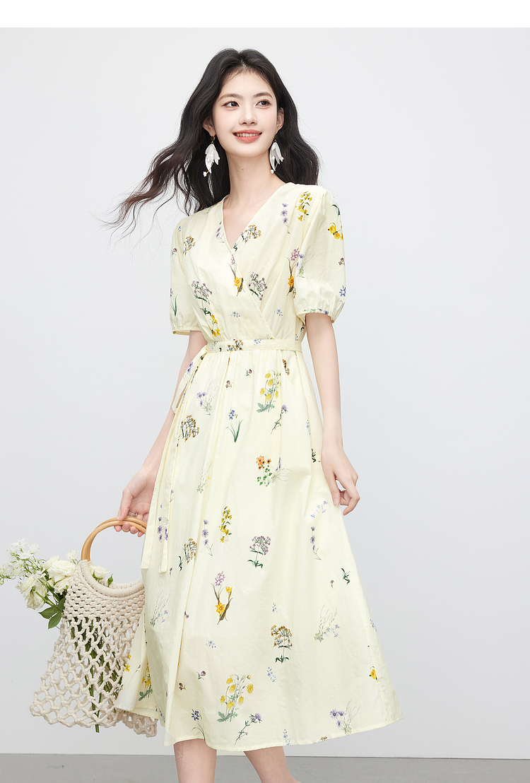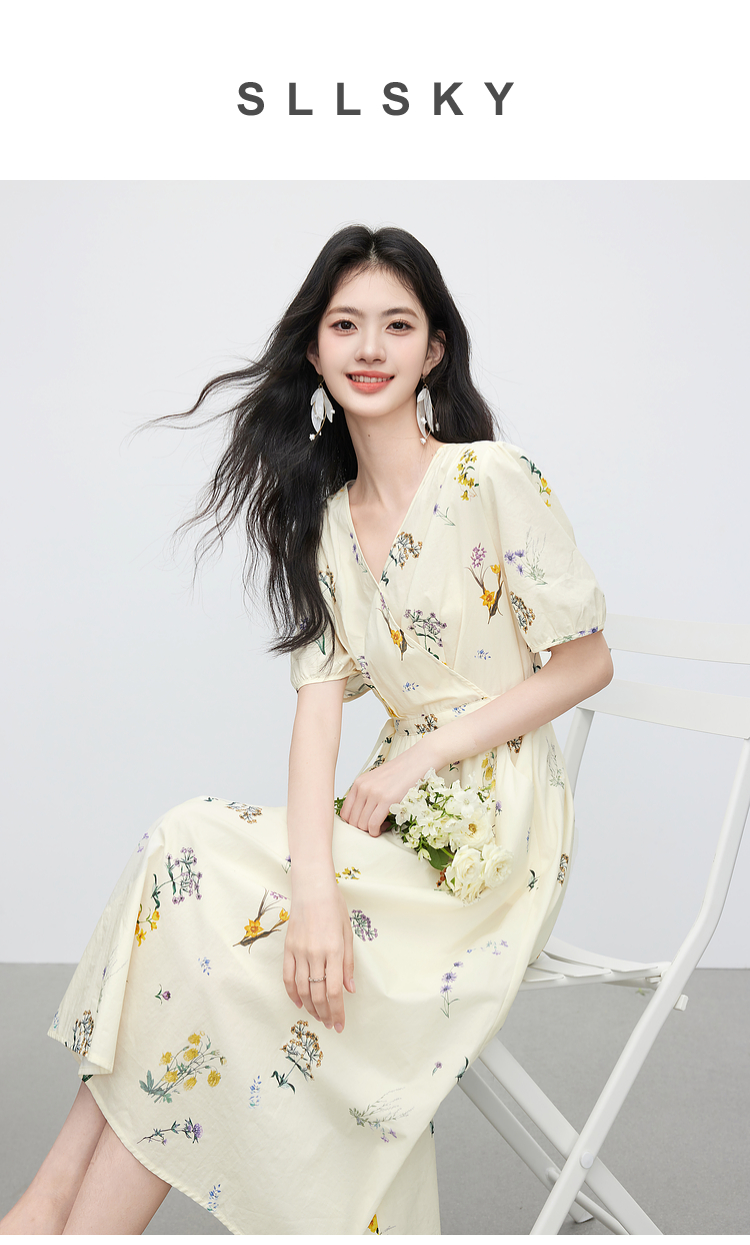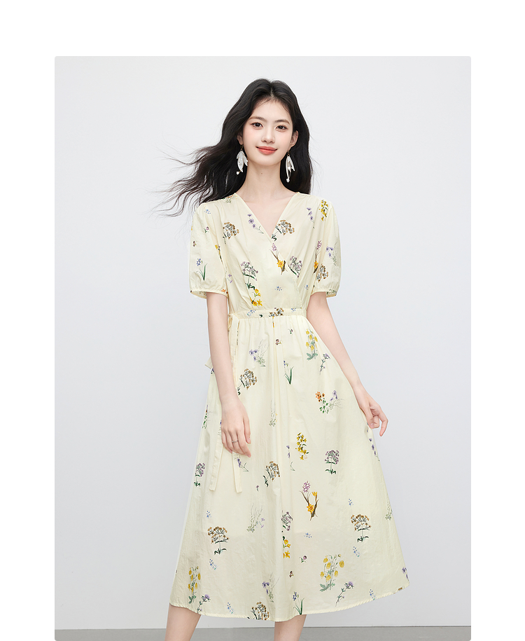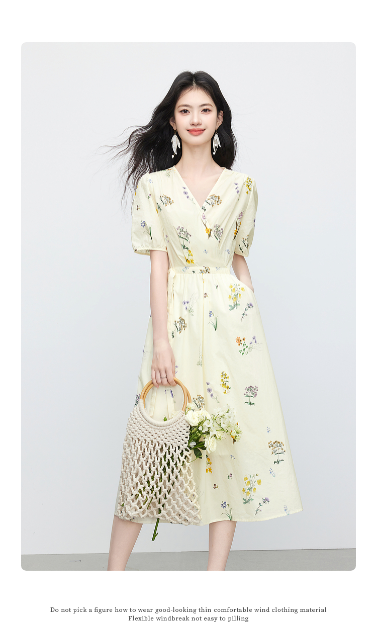 【周末秒杀】熙世界2025年新款法式植物碎花连衣裙女收腰显瘦夏日绝美V领裙子