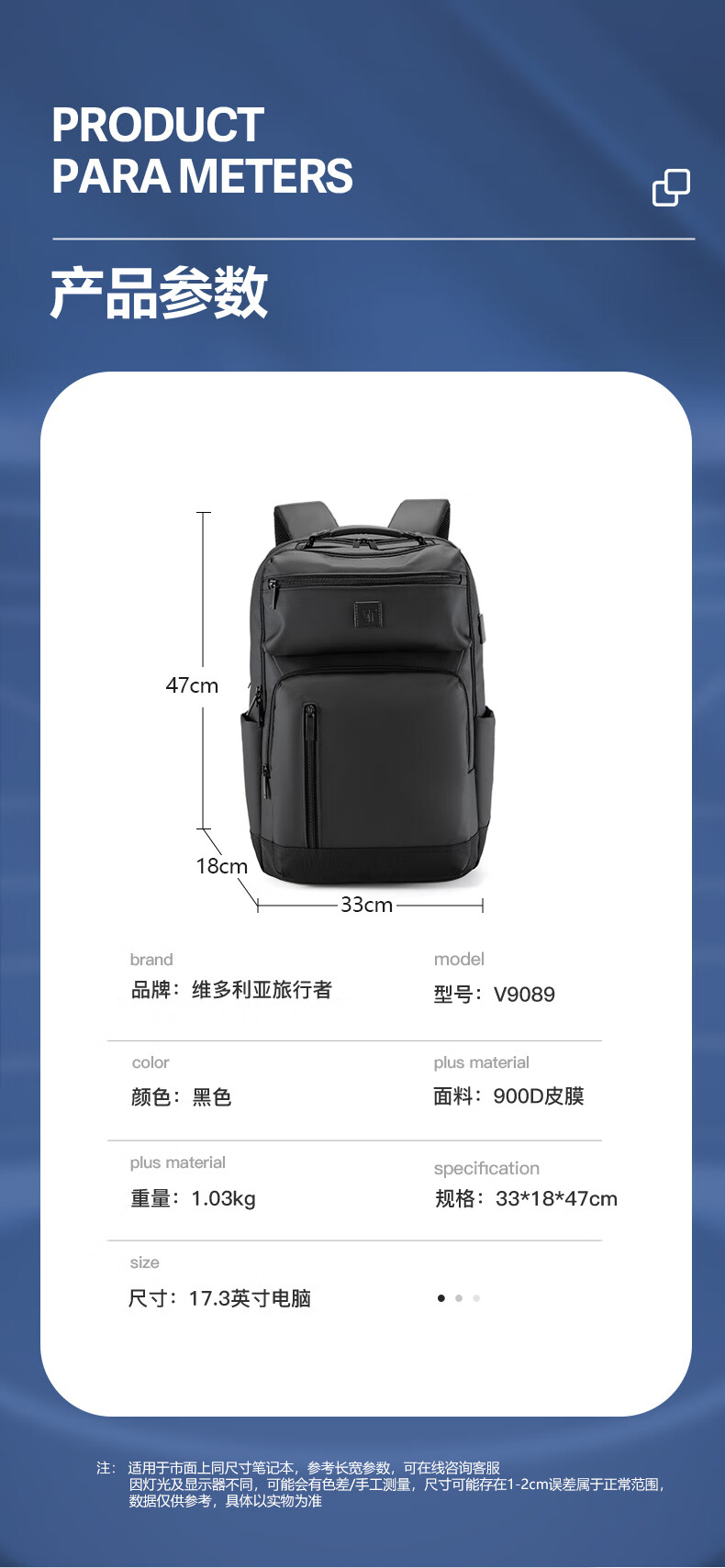 维多利亚旅行者商务出差包双肩包笔记本电脑包USB充电背包9089