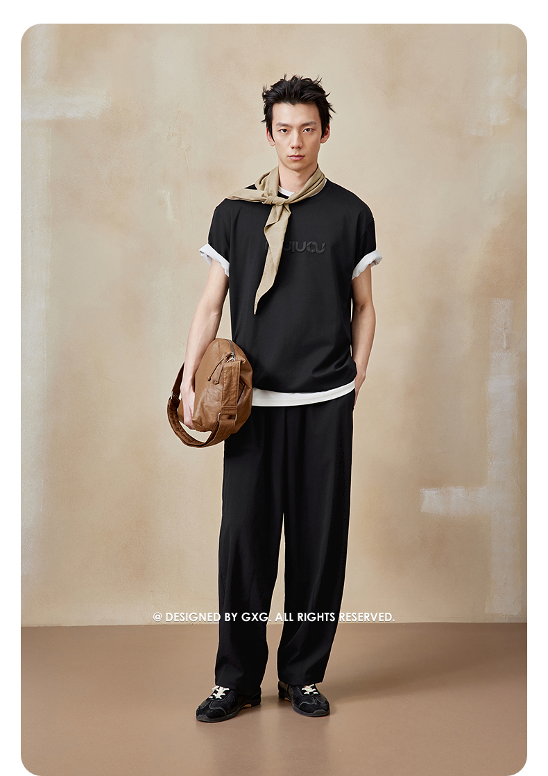 GXG男装【100%棉】25夏季时尚创意字母简约百搭男式圆领短袖T恤K&C