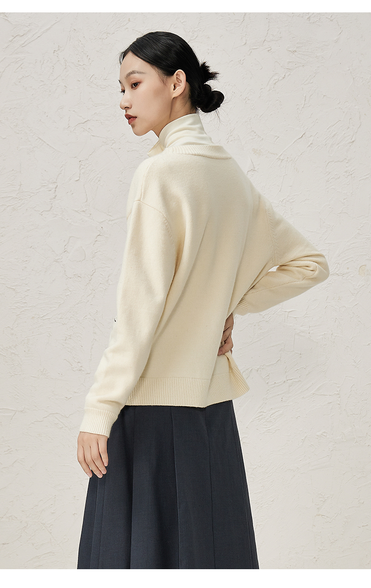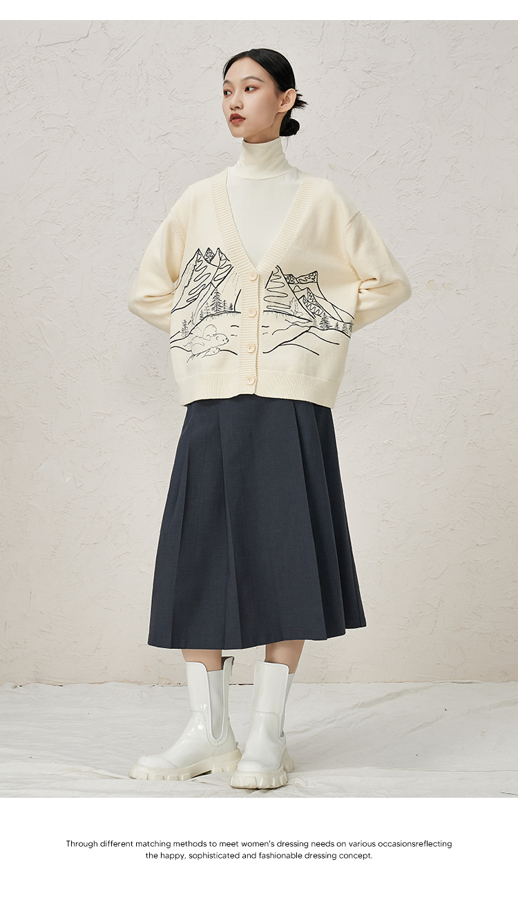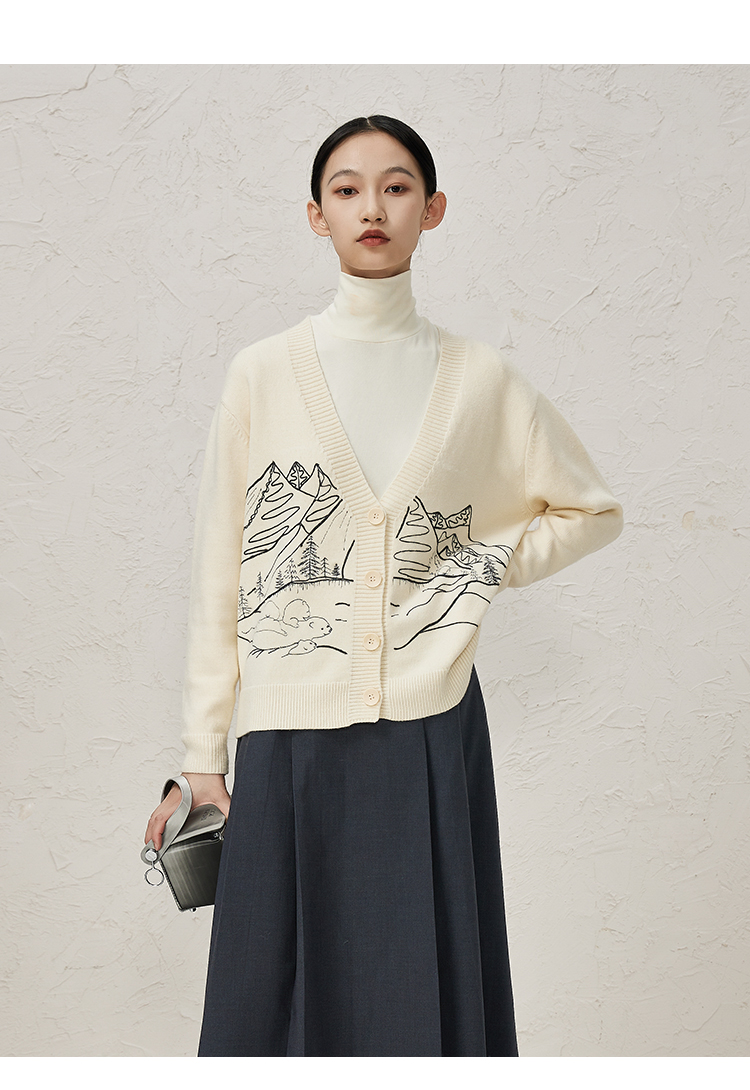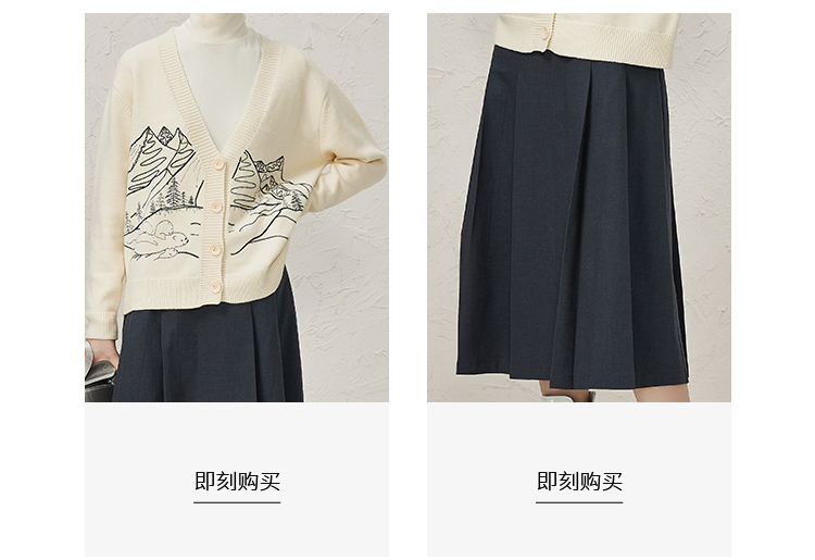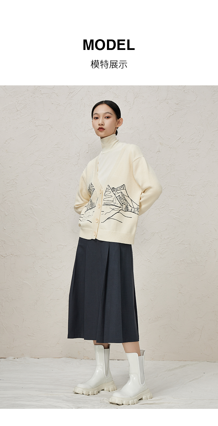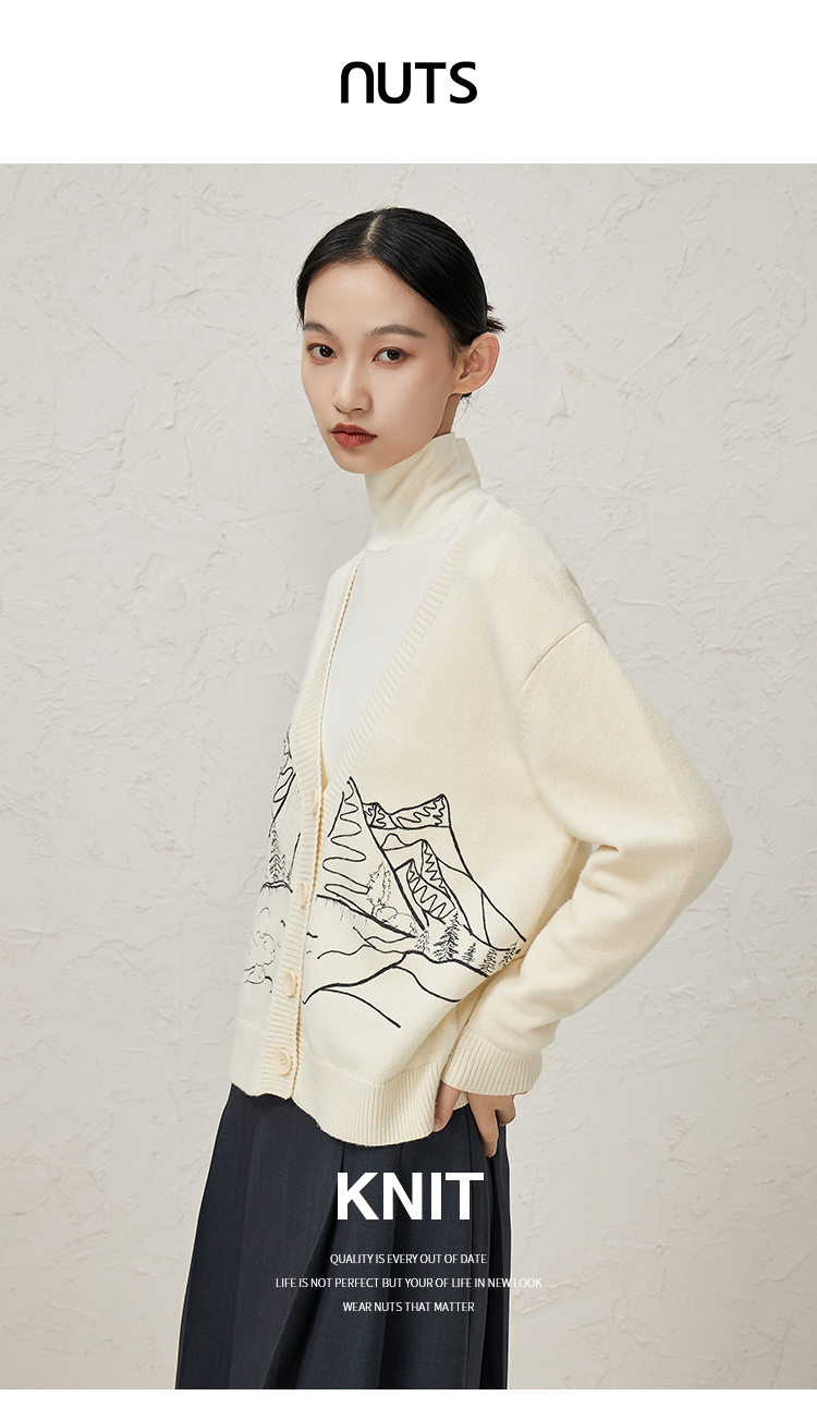 NUTS冬季新品百搭通勤杏色V领开衫时尚保暖毛织中外套女343052062