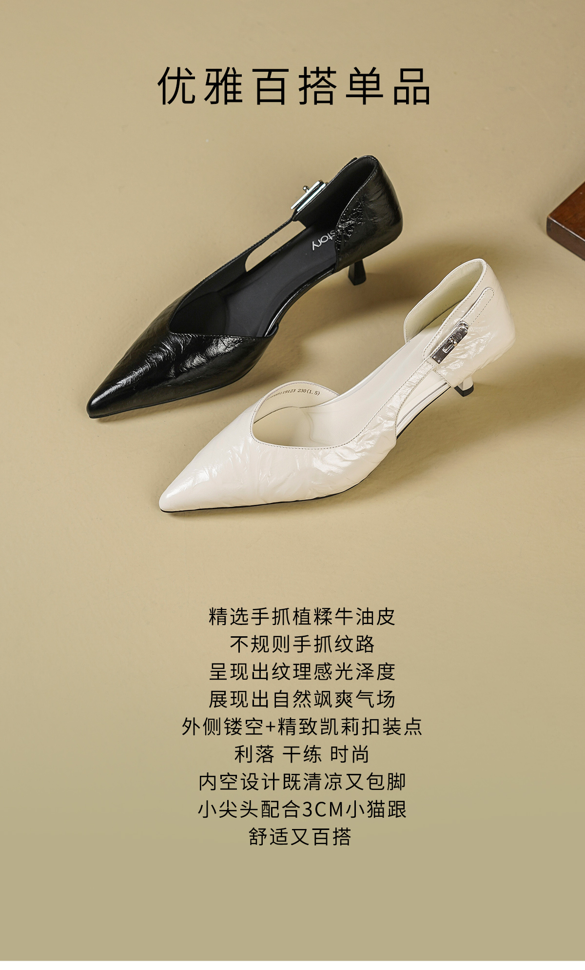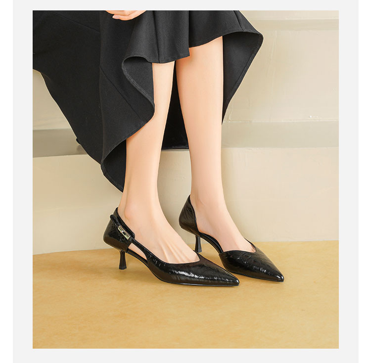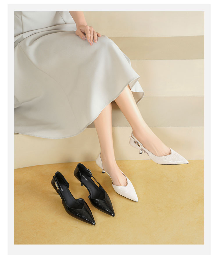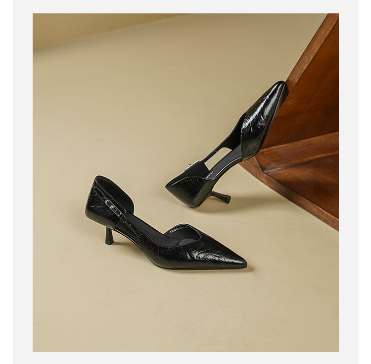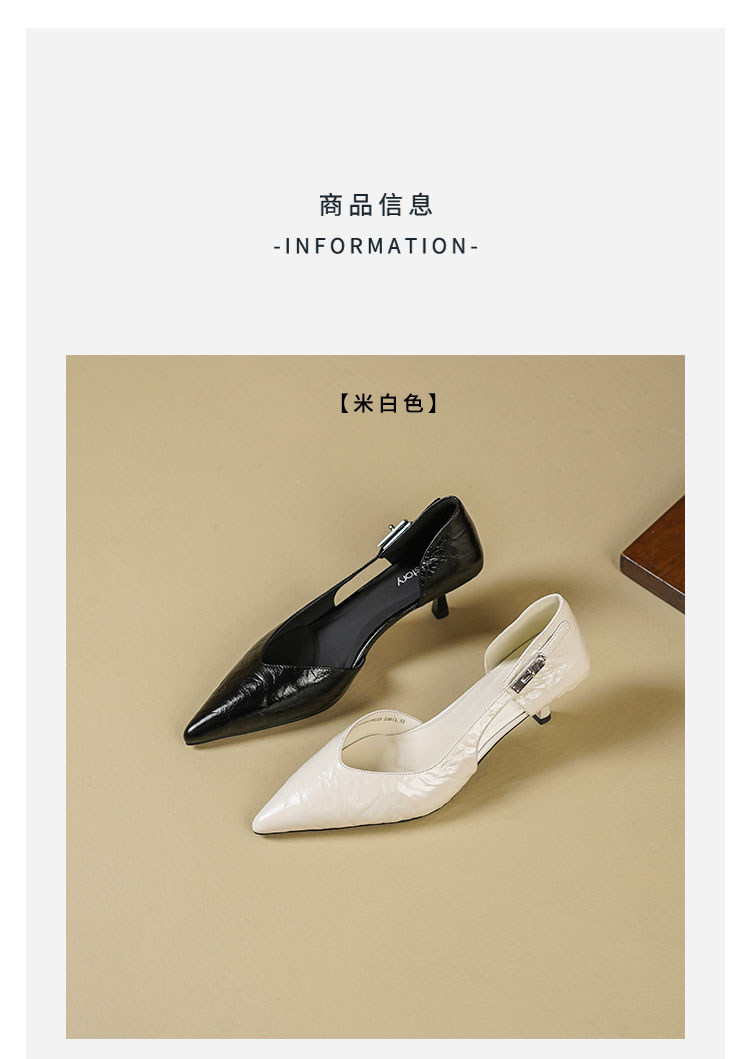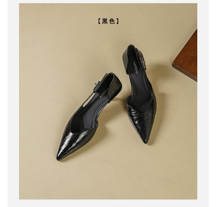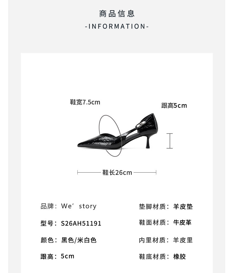 Westory2026年春季尖头小猫跟单鞋侧空牛油皮百搭通勤单鞋空凉鞋S26AH51191