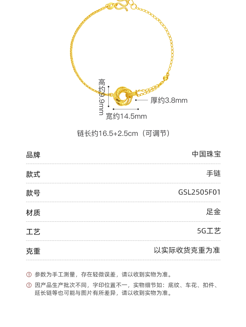 「追光」5G玫瑰星云黄金手链 足金手链爆款生日礼物送女友