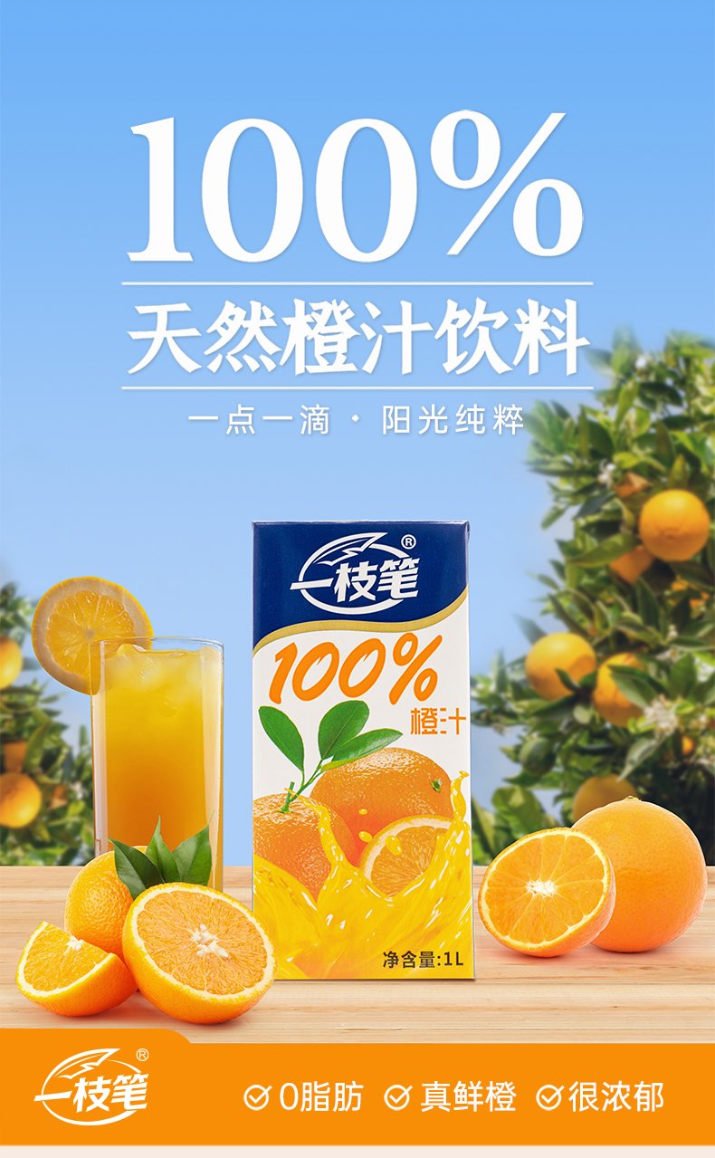 自营(一枝笔)-利乐装饮料1L*2瓶大瓶装浓缩果汁饮品果汁橙汁饮品