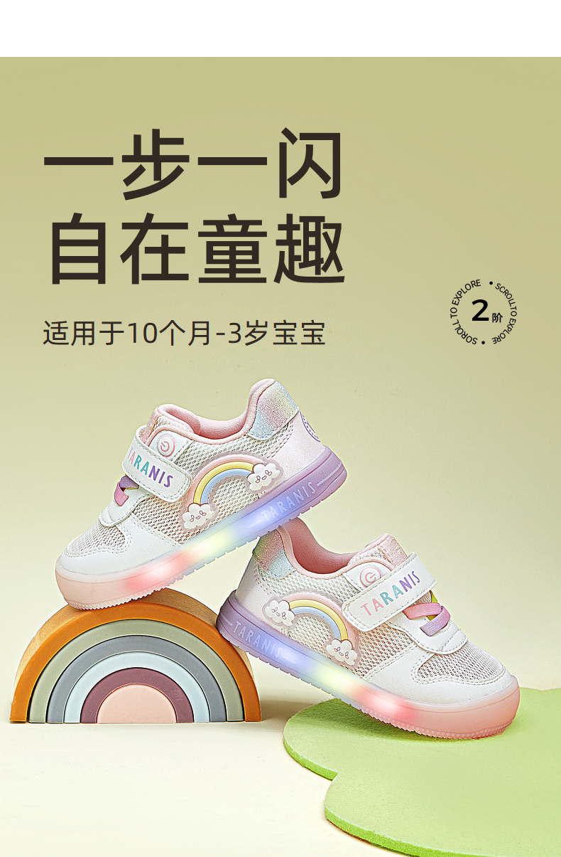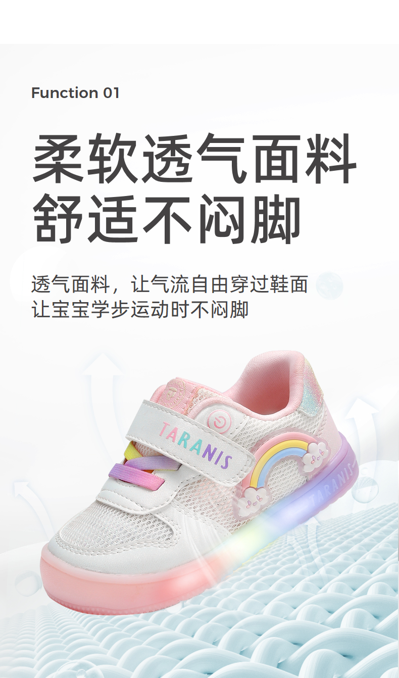 泰兰尼斯女宝宝闪灯鞋2025春季新款童鞋软底甜美女童学步鞋发光鞋 T02T5A6160