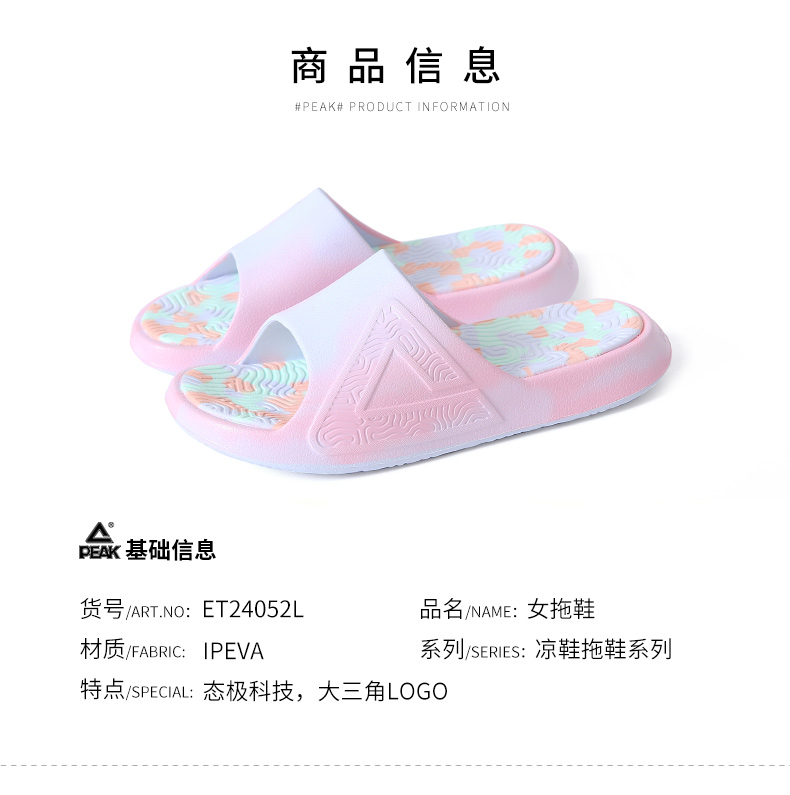 匹克2023春夏新款态极拖鞋运动拖鞋女款外穿沙滩软拖学生篮球拖鞋ET24052L