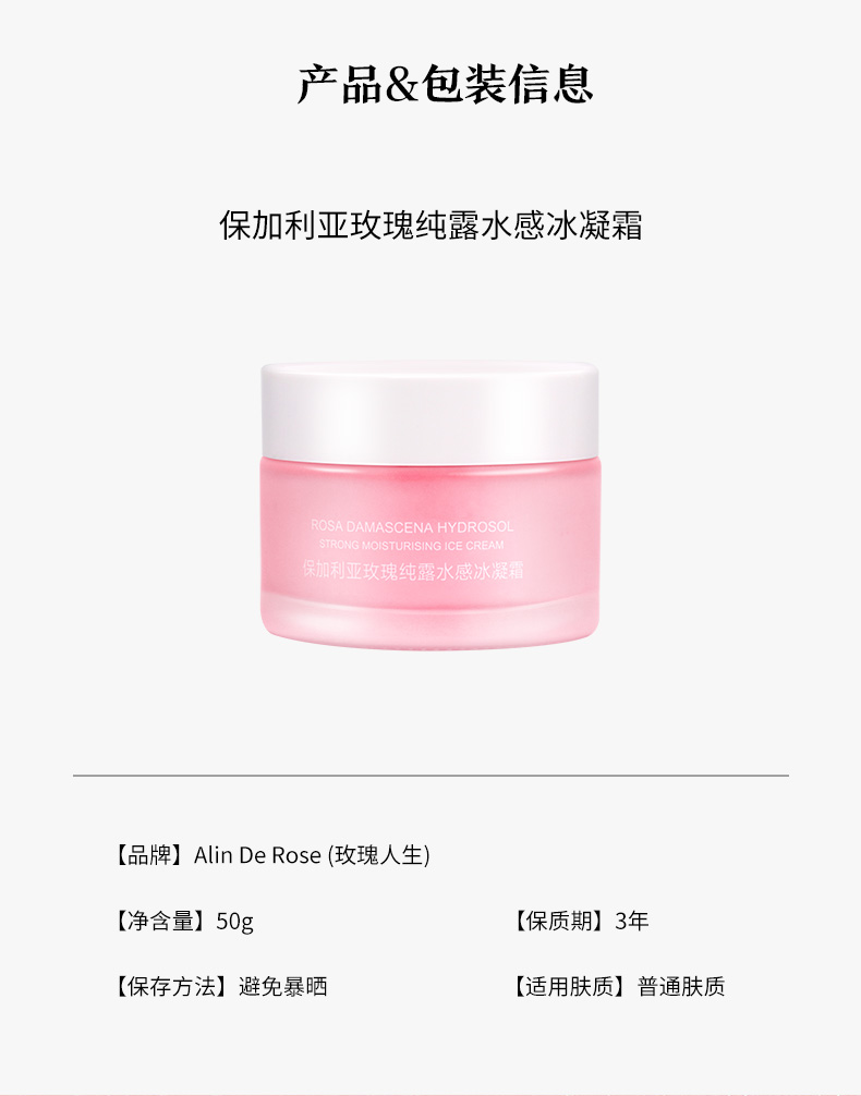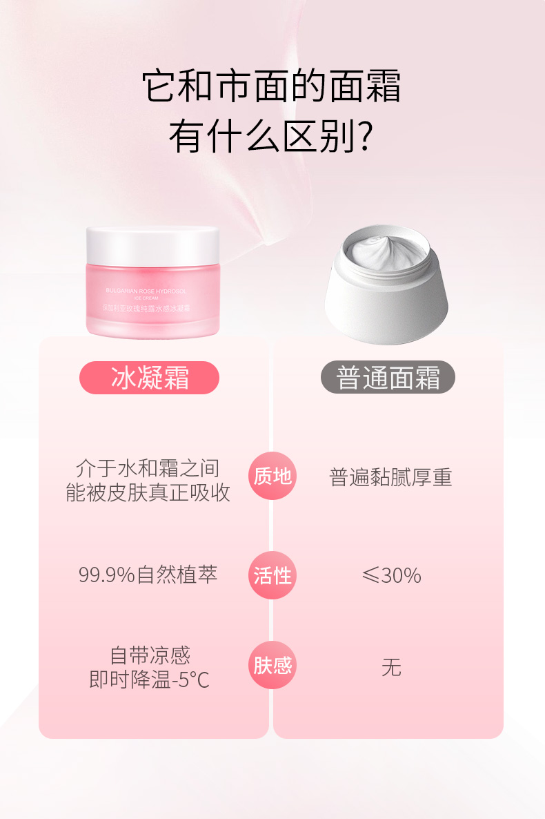 玫瑰纯露水感冰凝霜 50g/瓶 一抹即溶 水润柔滑