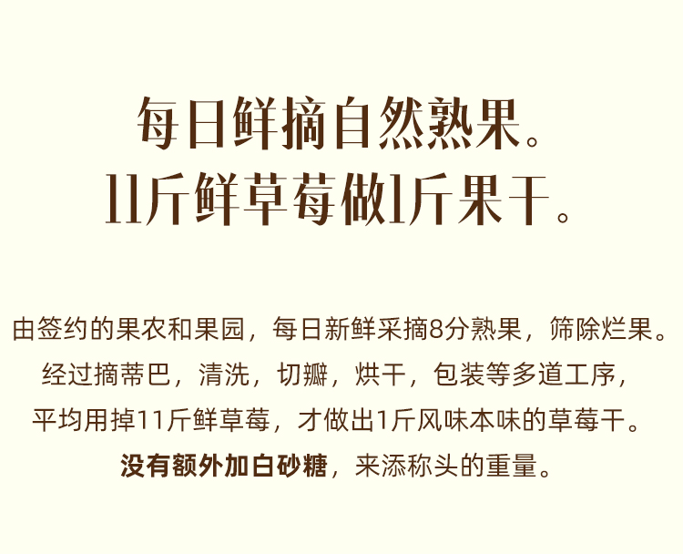 【一方云拾】原切草莓干 11斤草莓晒成1斤干 配料简单 8分甜2分酸 自然草莓香