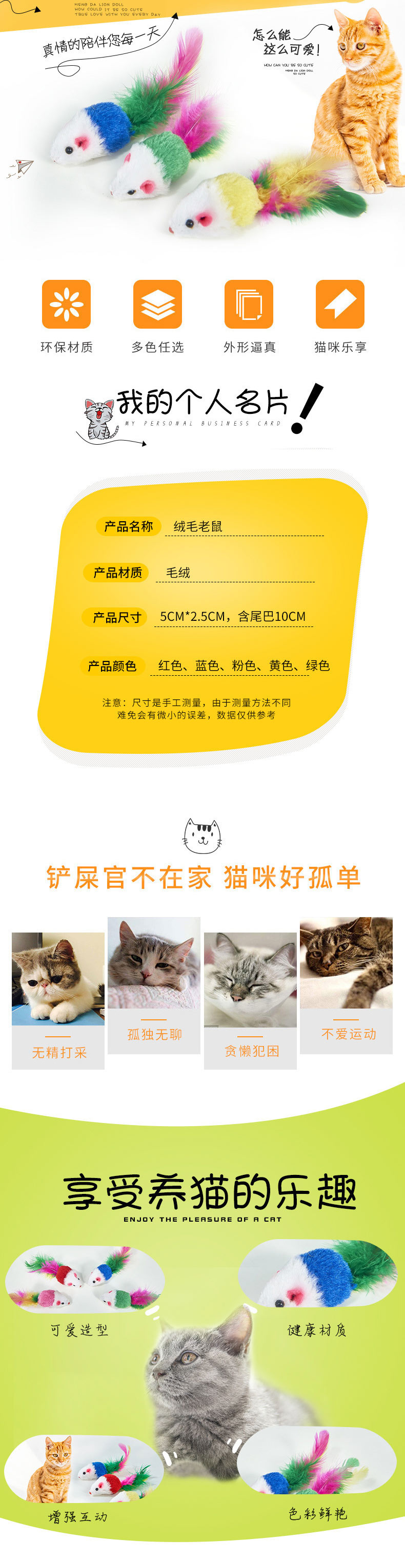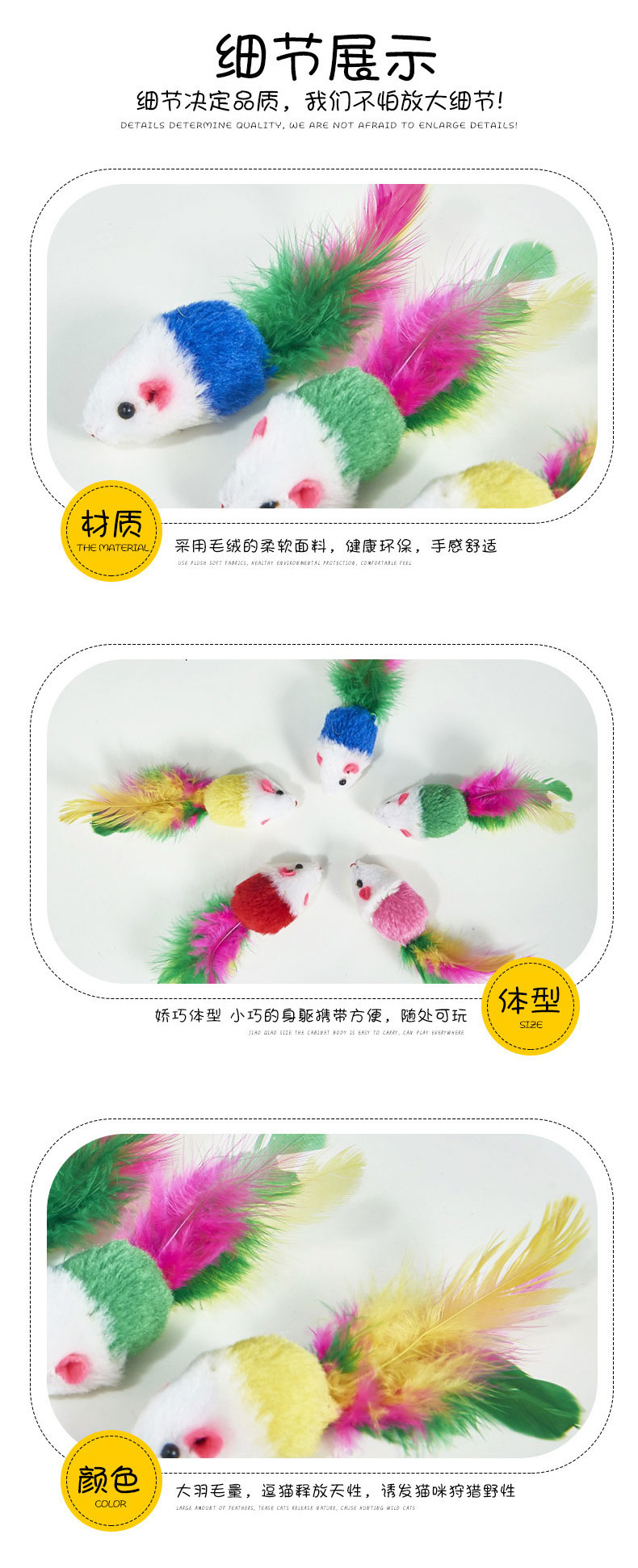 毛绒小老鼠 5个袋装 炫彩羽毛 颜色随机 自嗨逗趣互动猫咪玩具