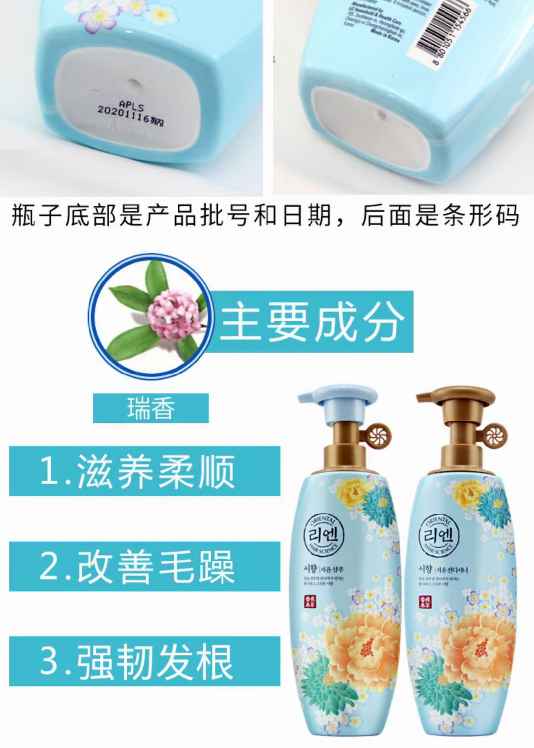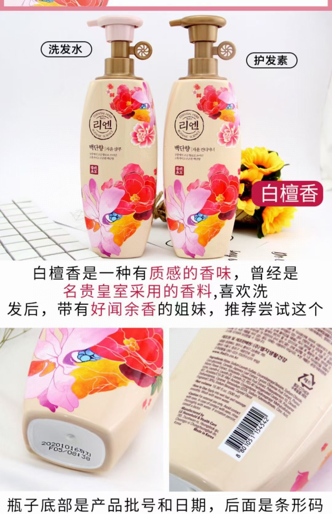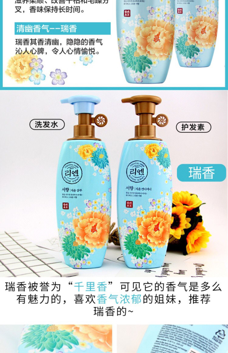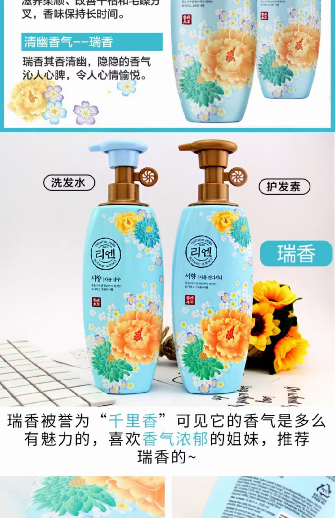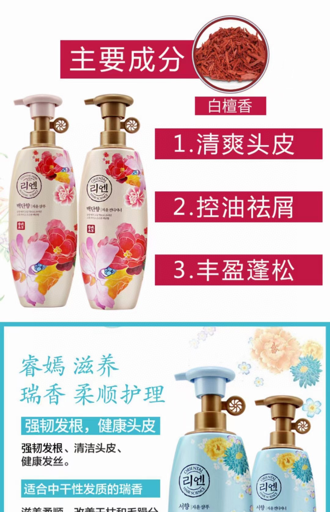 韩国LG Reen睿嫣千里香白檀香瑞香洗发水护发素500ml