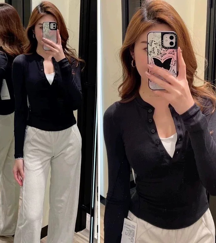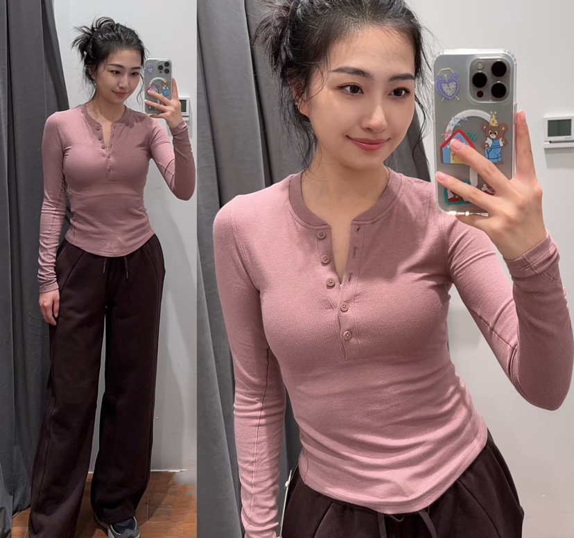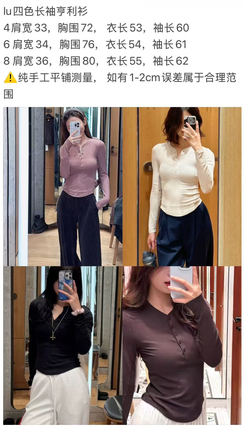312-9 渠道货 超好穿 lu女士四色长袖 亨利衫 运动打底休闲 130以内穿8码