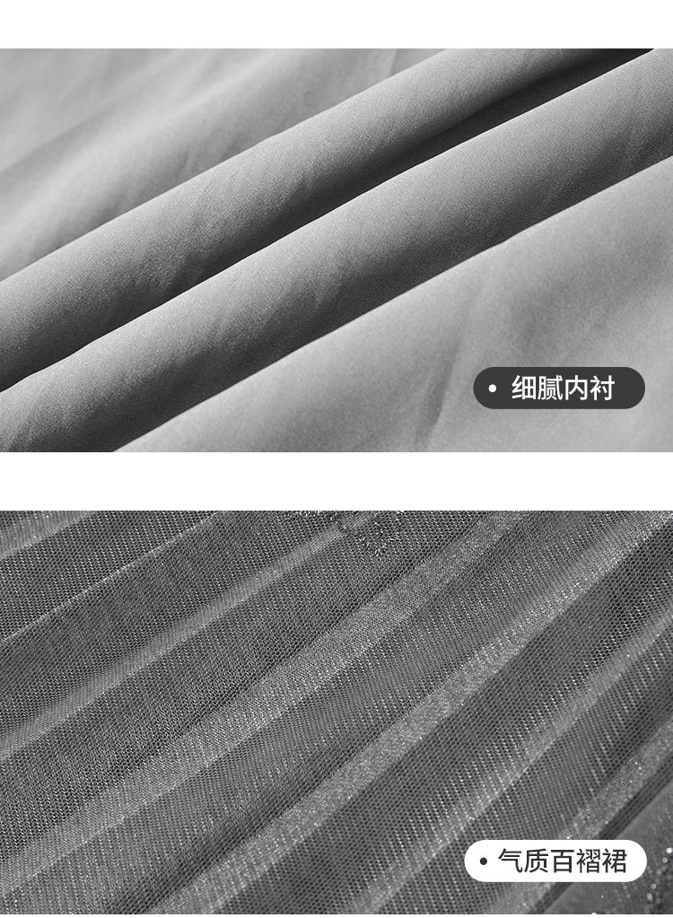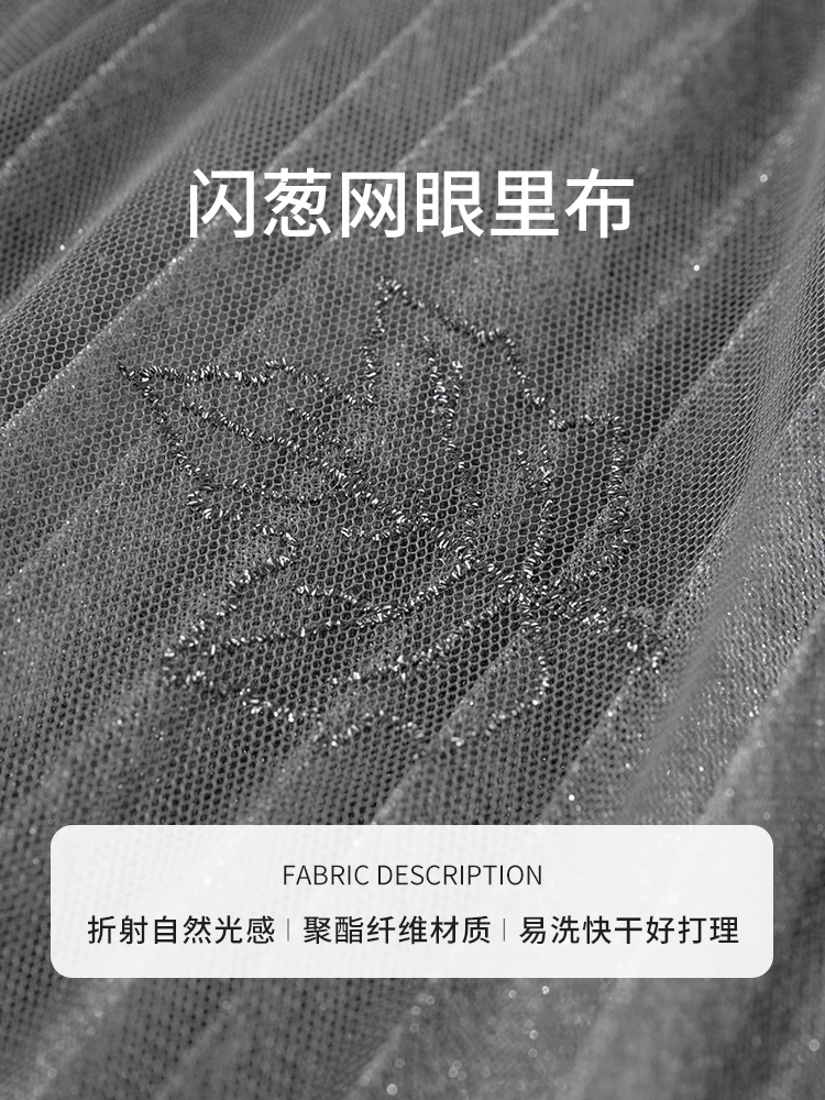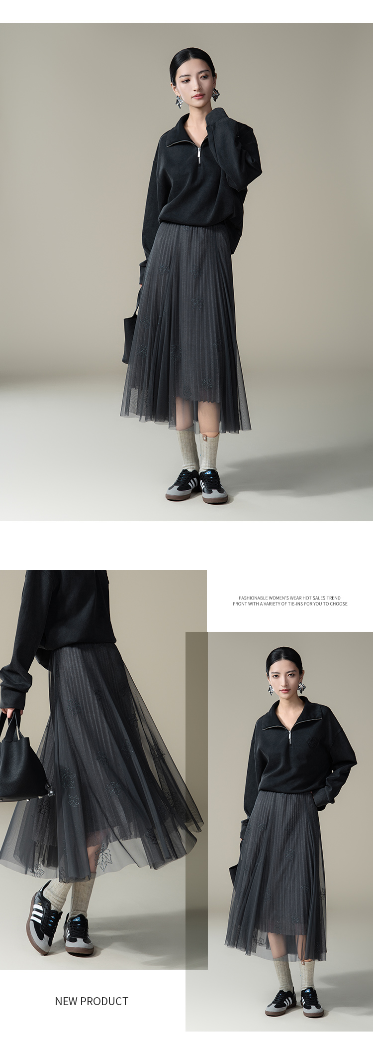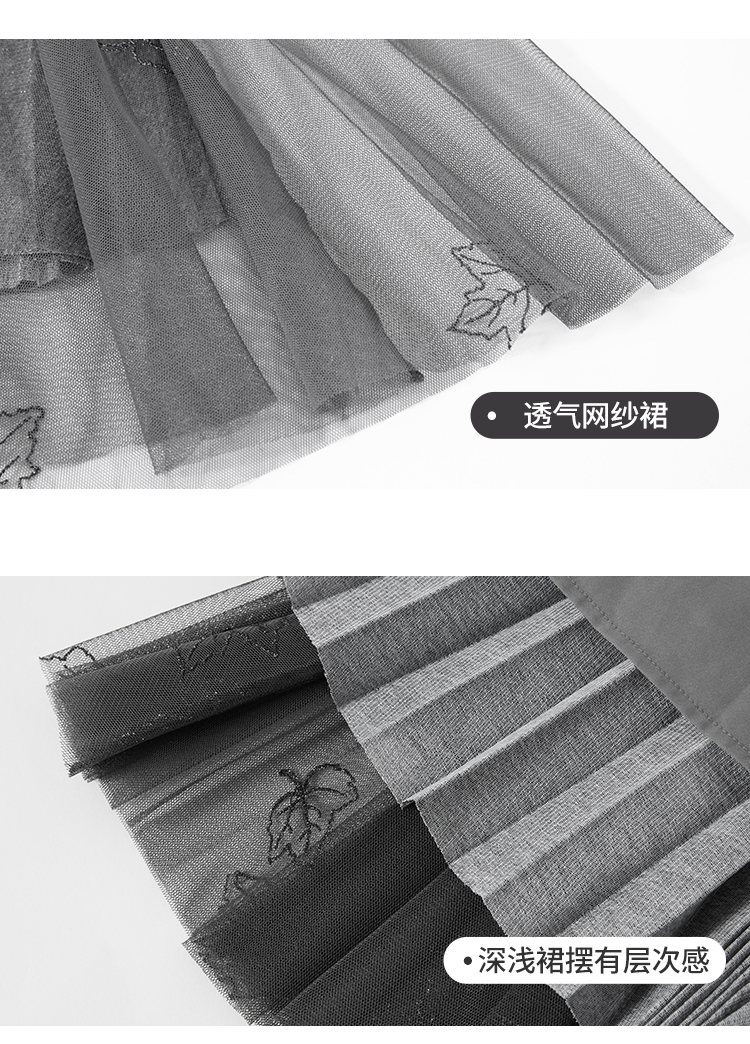 【商场同款】CNS4850 “秋叶纱裙” 深灰色 气质优雅 刺绣枫叶图案 浪漫有质感 经典小A裙型 包容身材 顺色松紧腰 更舒适网纱半裙